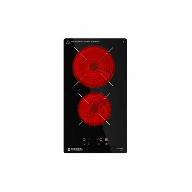 Электрическая варочная панель MEFERI MEH302BK LIGHT, стеклокерамика, 30 см, 2 конфорки, черный