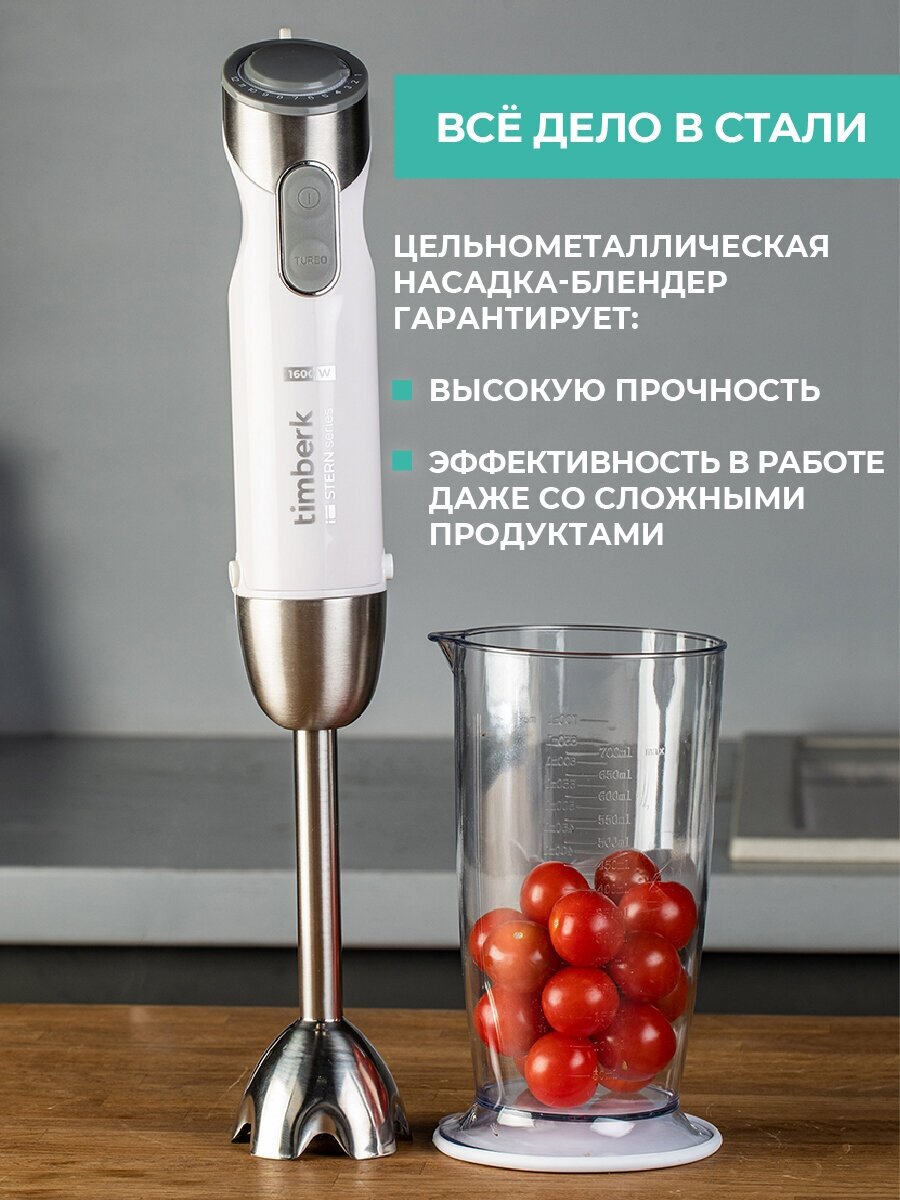 Блендер Timberk T-HB42F04, 1600Вт, белый, погружной
