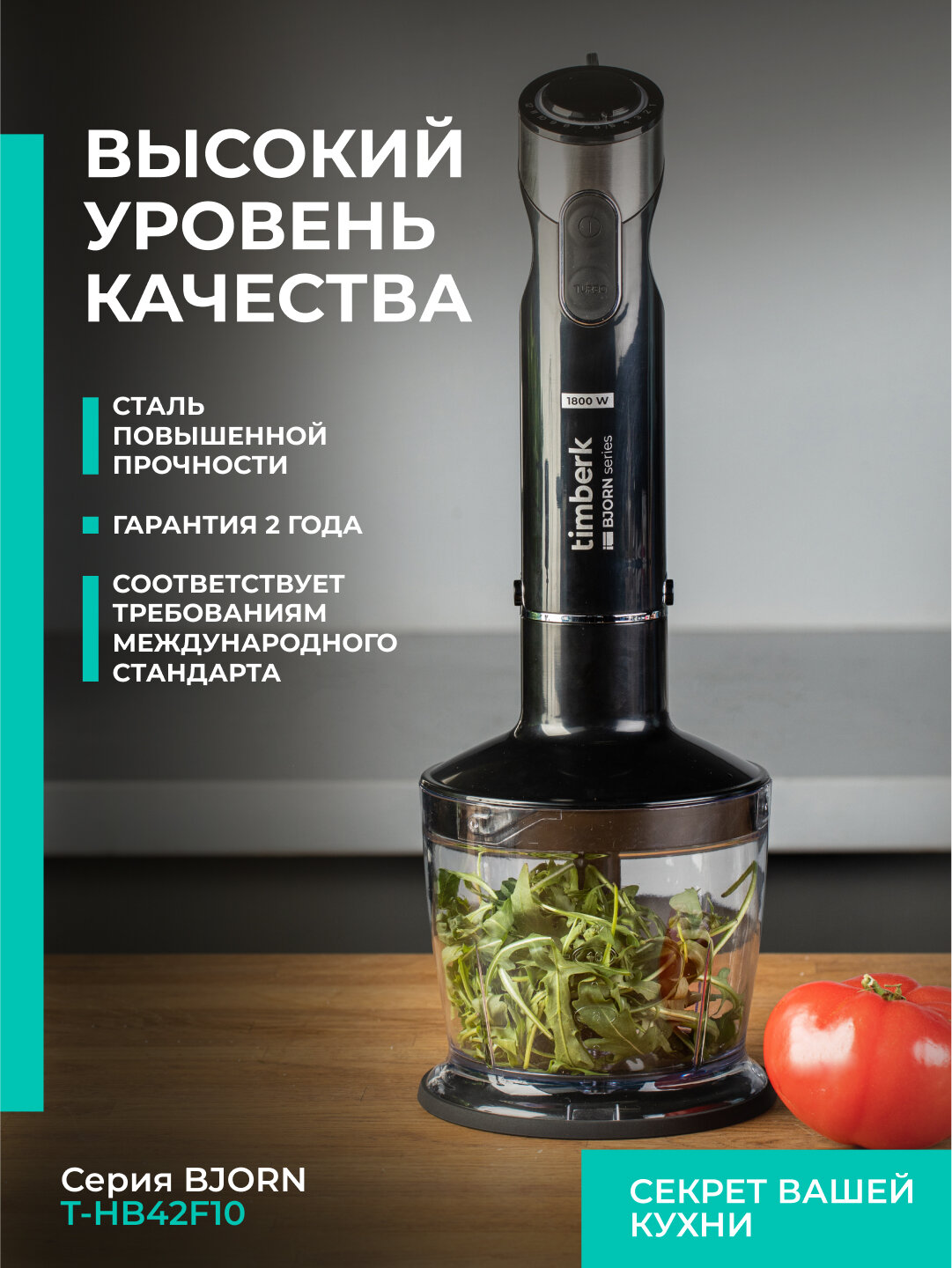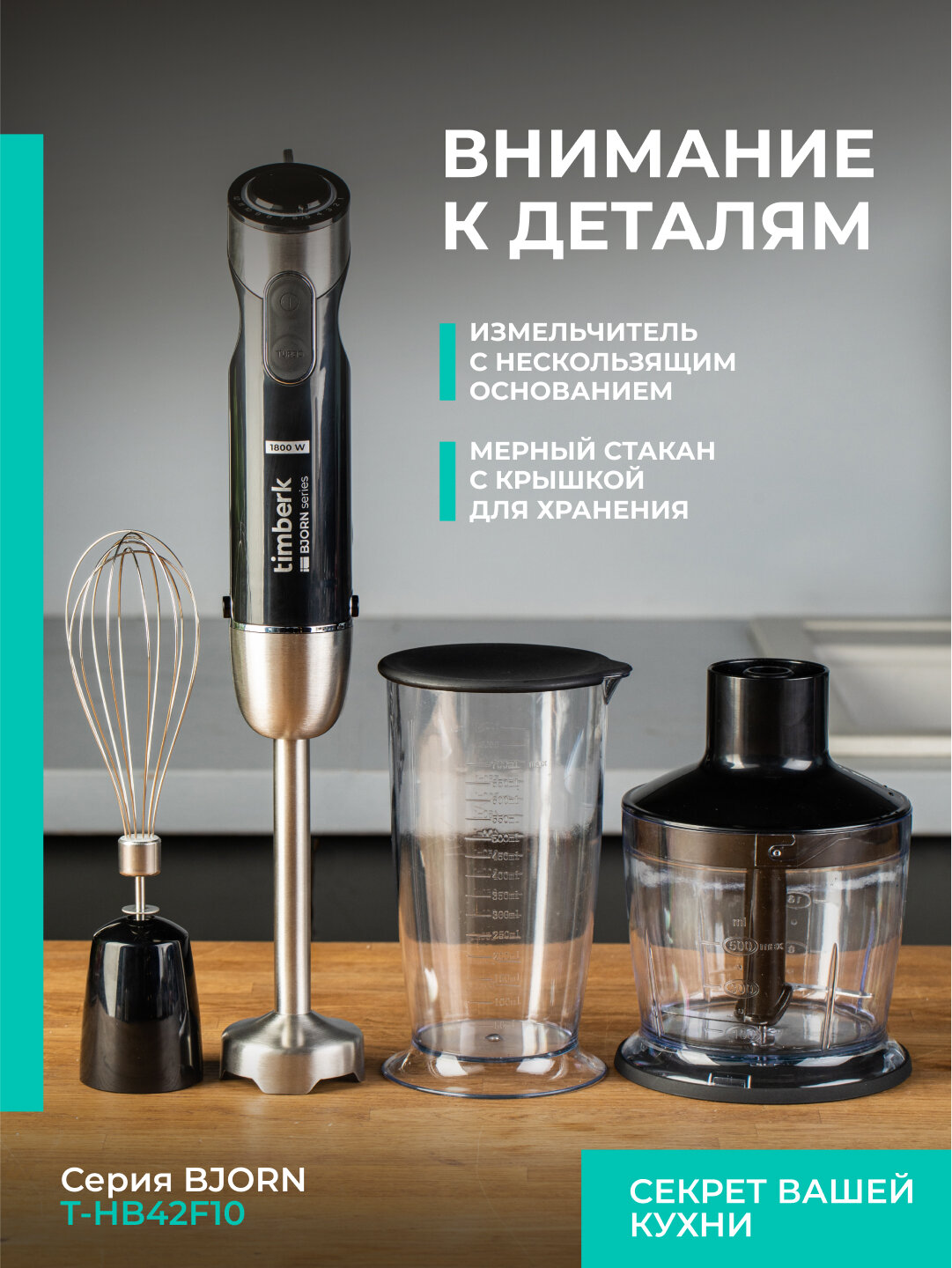 Блендер погружной Timberk T-HB42F10, TURBO режим, 1800 Вт