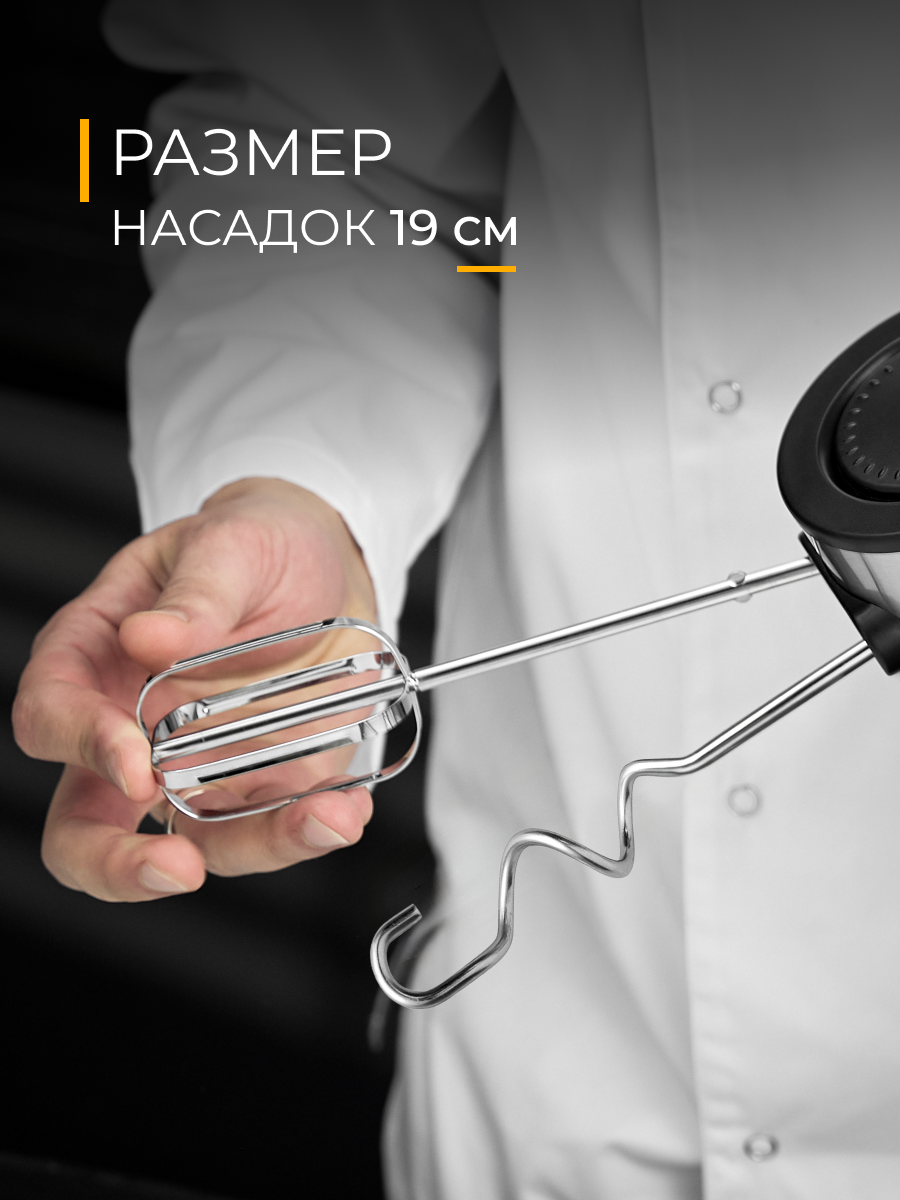 | Насадки | венчик для взбивания / крючки для замешивания теста |