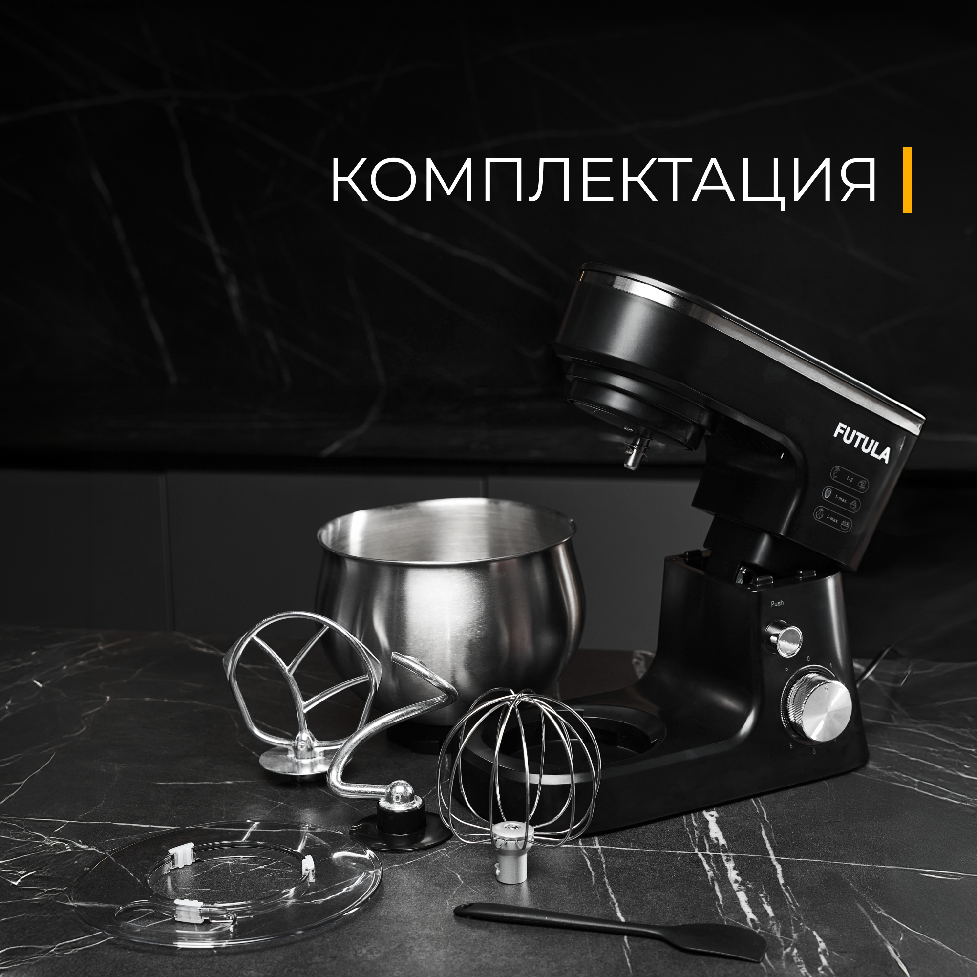 Купить Планетарный миксер Futula HM10 черный, 3 насадки, 6 скоростей, 1200 Вт