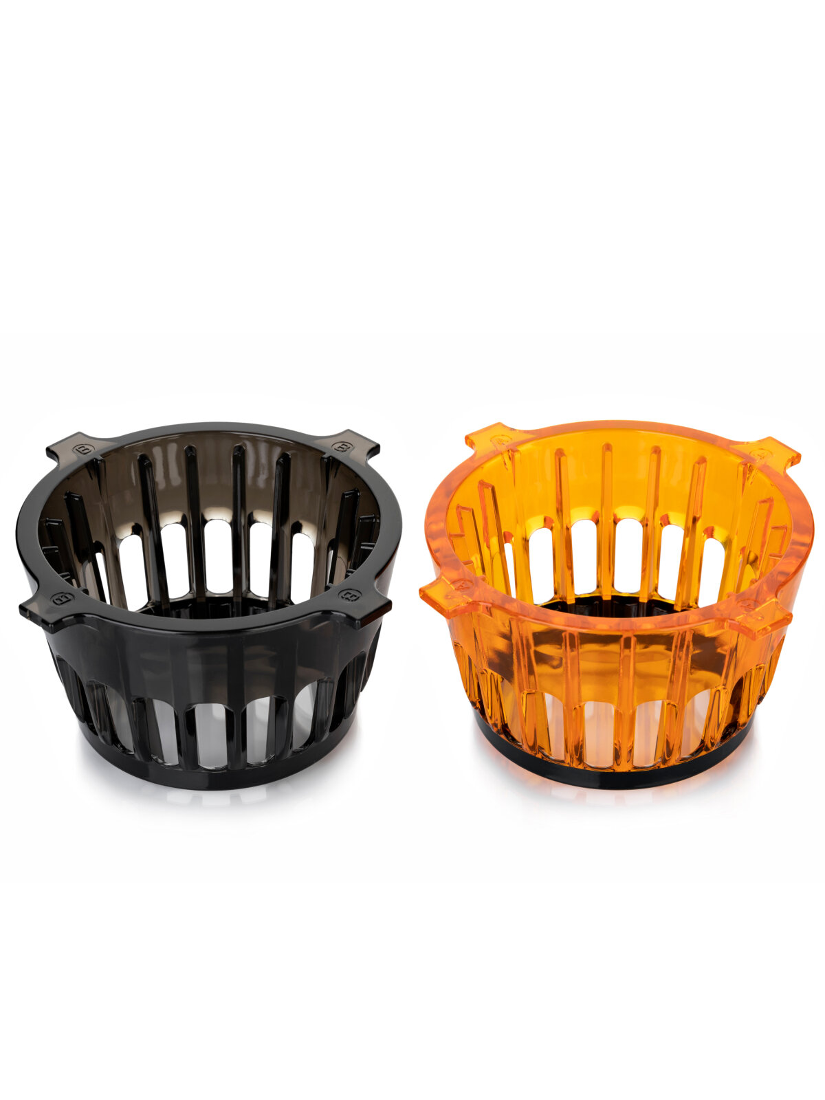 | Подробная комплектация | Корпус соковыжималки; Загрузочный отсек с крышкой и ножами; Отжимная корзина; Шнек; Внутренняя решётка фильтрующего элемента; Основная внешняя решётка фильтрующего элемента чёрного цвета; Дополнительная внешняя решётка фильтрующего элемента оранжевого цвета, предназначенная для смузи; Ёмкость для сока; Контейнер для жмыха; Толкатель; Щётка для очистки соковыжималки. |