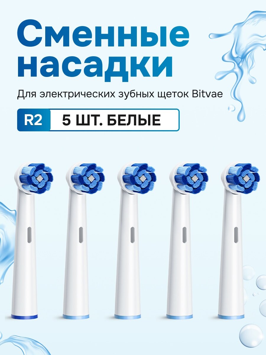 Насадки для электрической зубной щетки Bitvae R2 белые, 5 шт интересное: