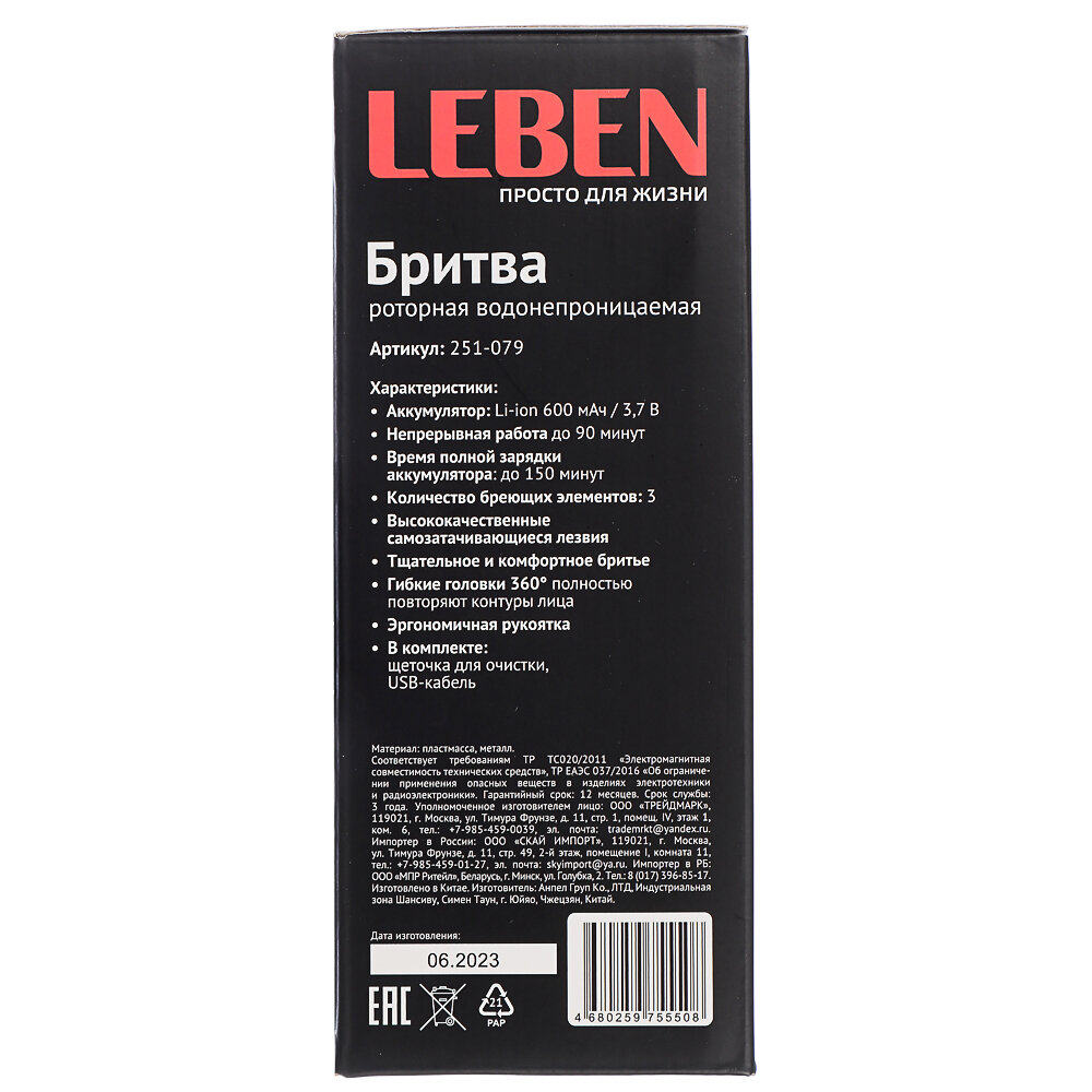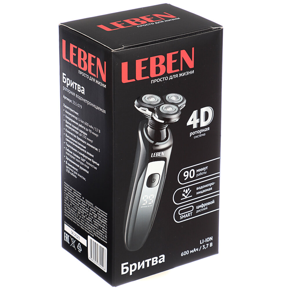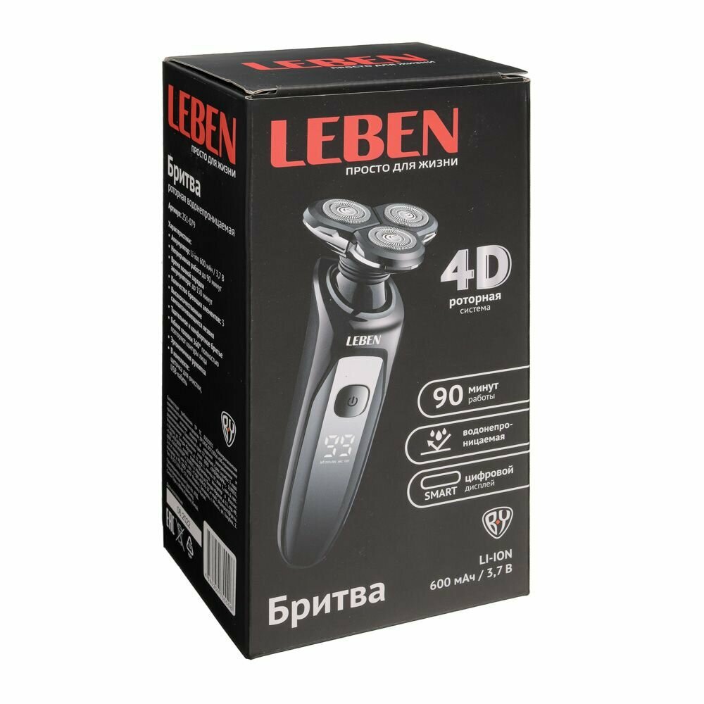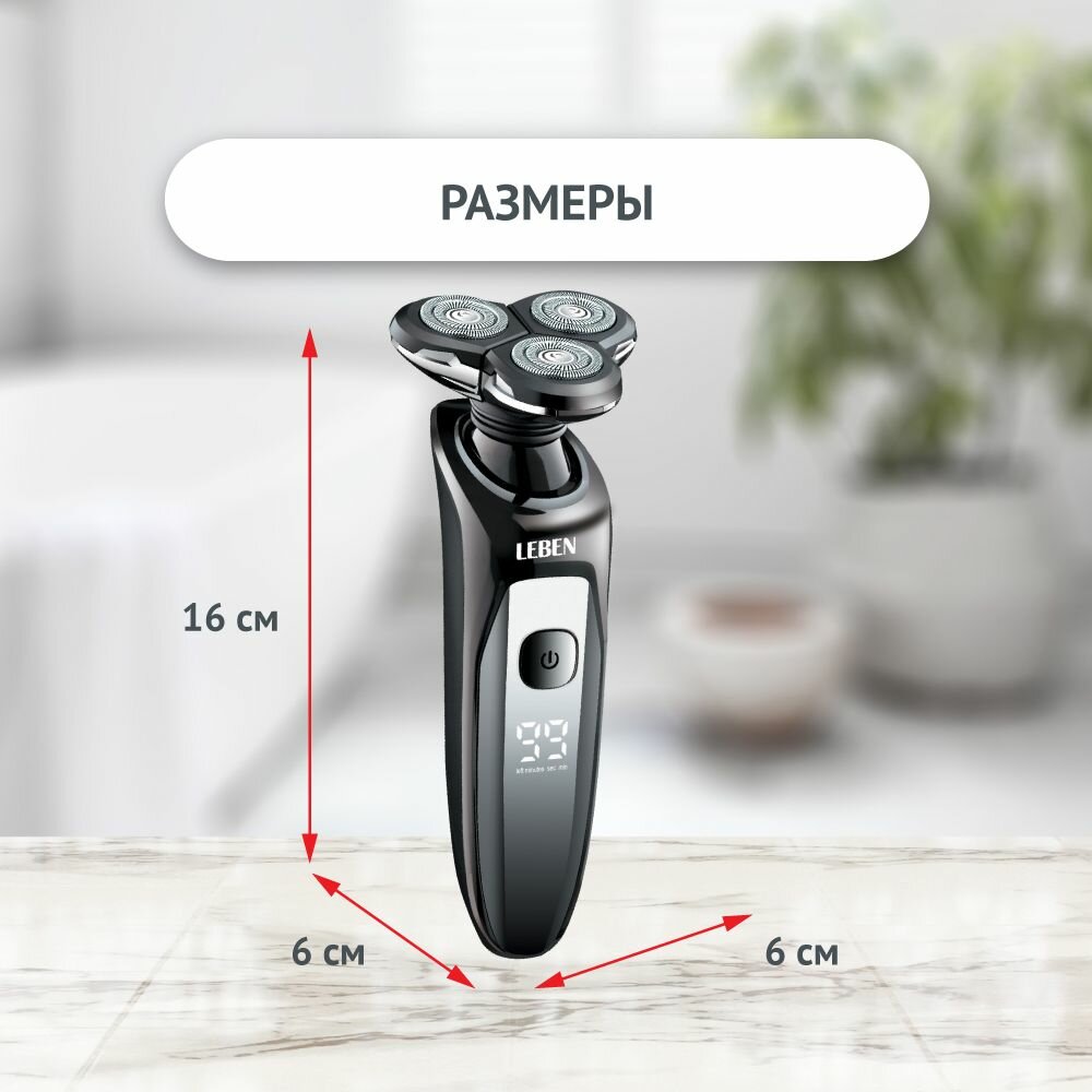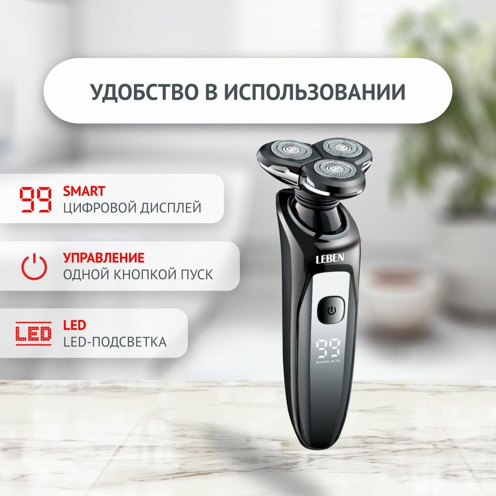 LEBEN Бритва Премиум роторная водонепроницаемая, цифровой дисплей, аккумулятор 3,7 В, USB кабель