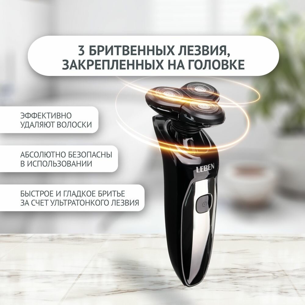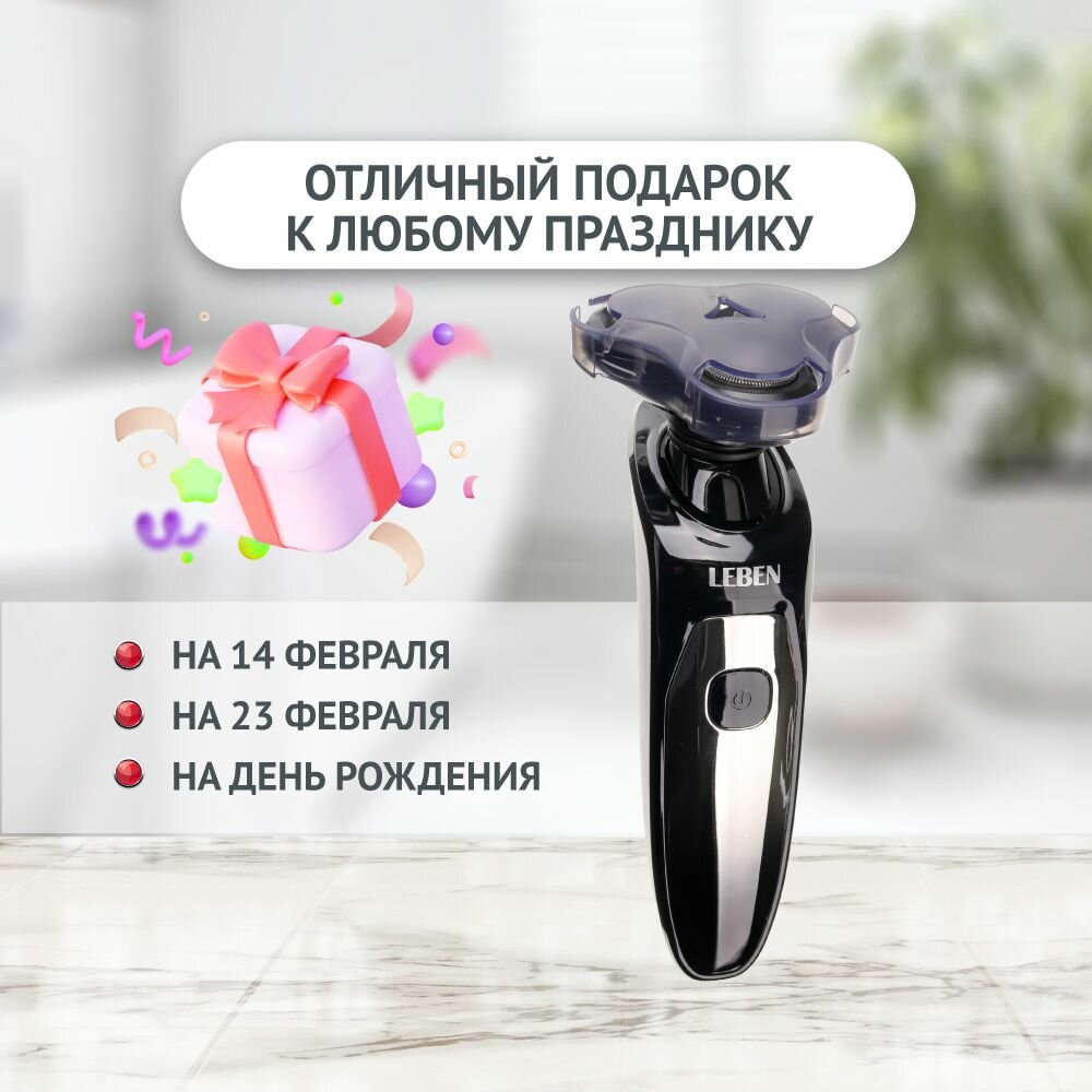 Электробритва мужская роторная водонепроницаемая LEBEN, цифровой дисплей, аккумулятор 3,7 В, USB кабель интересное: