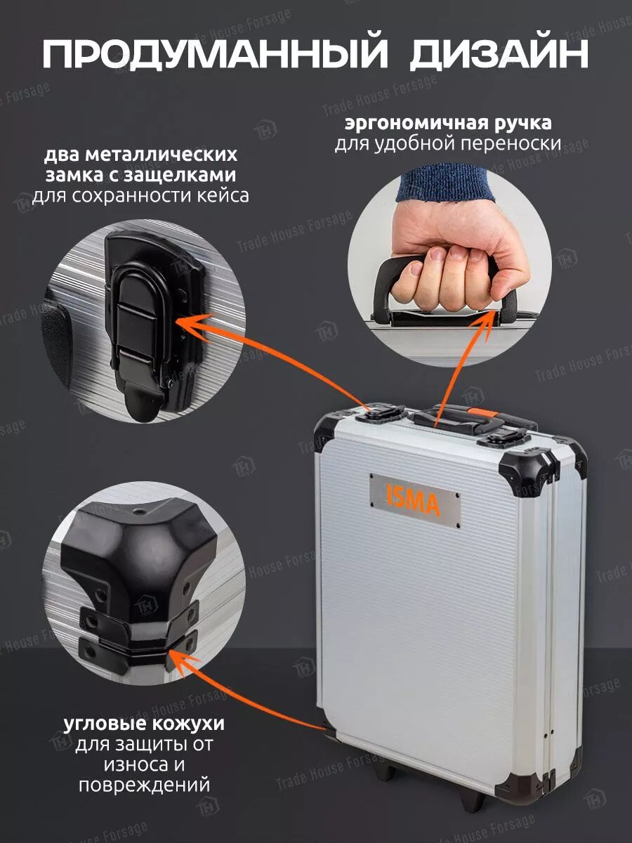 Набор инструментов для автомобиля ISMA-2531-5EURO 53 предмета, Трещотка 1/4"DR, головки 6-гранные (4-14 мм), биты PH, SL, PZ, удлинители