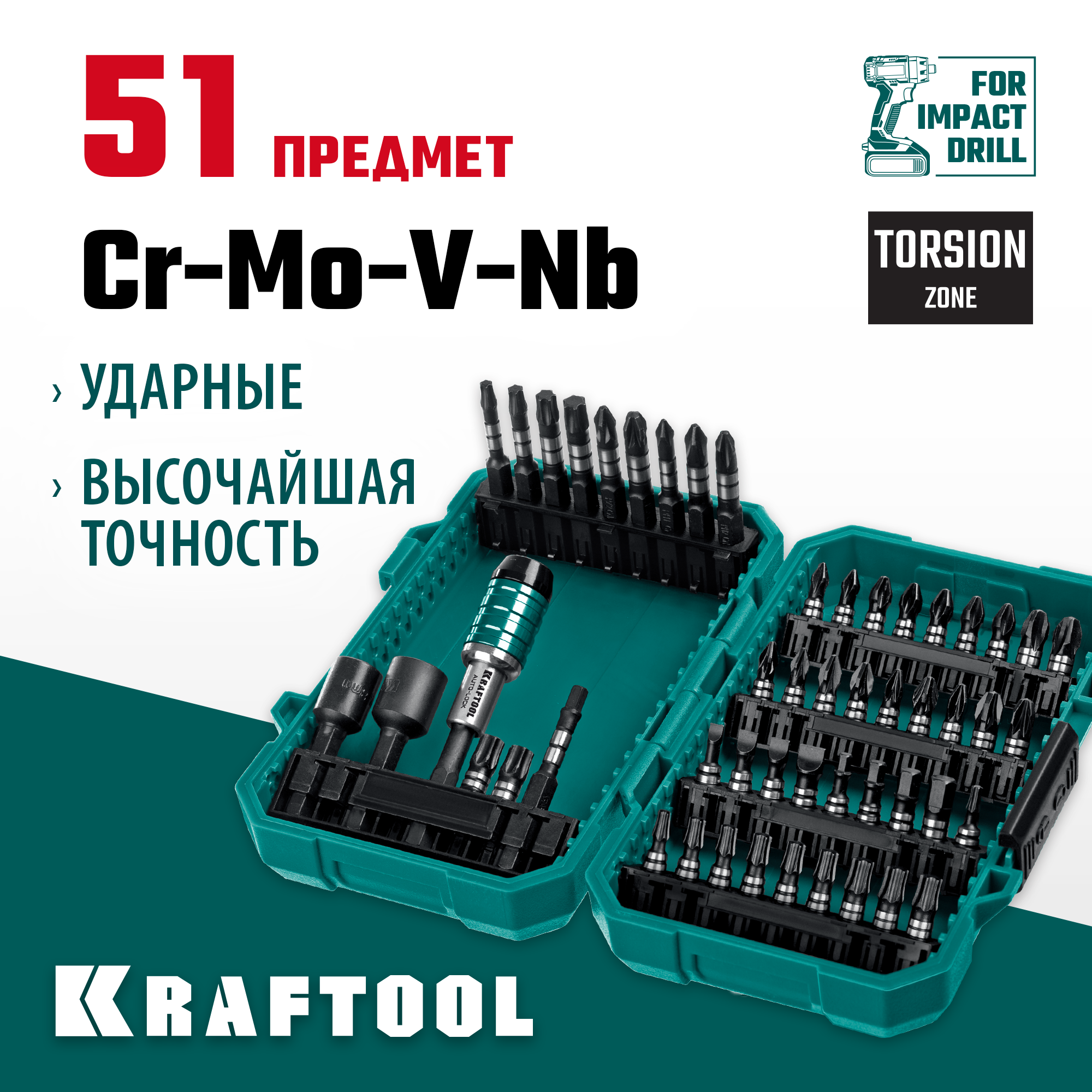Набор ударных бит KRAFTOOL Impact-51, 51 интересное: