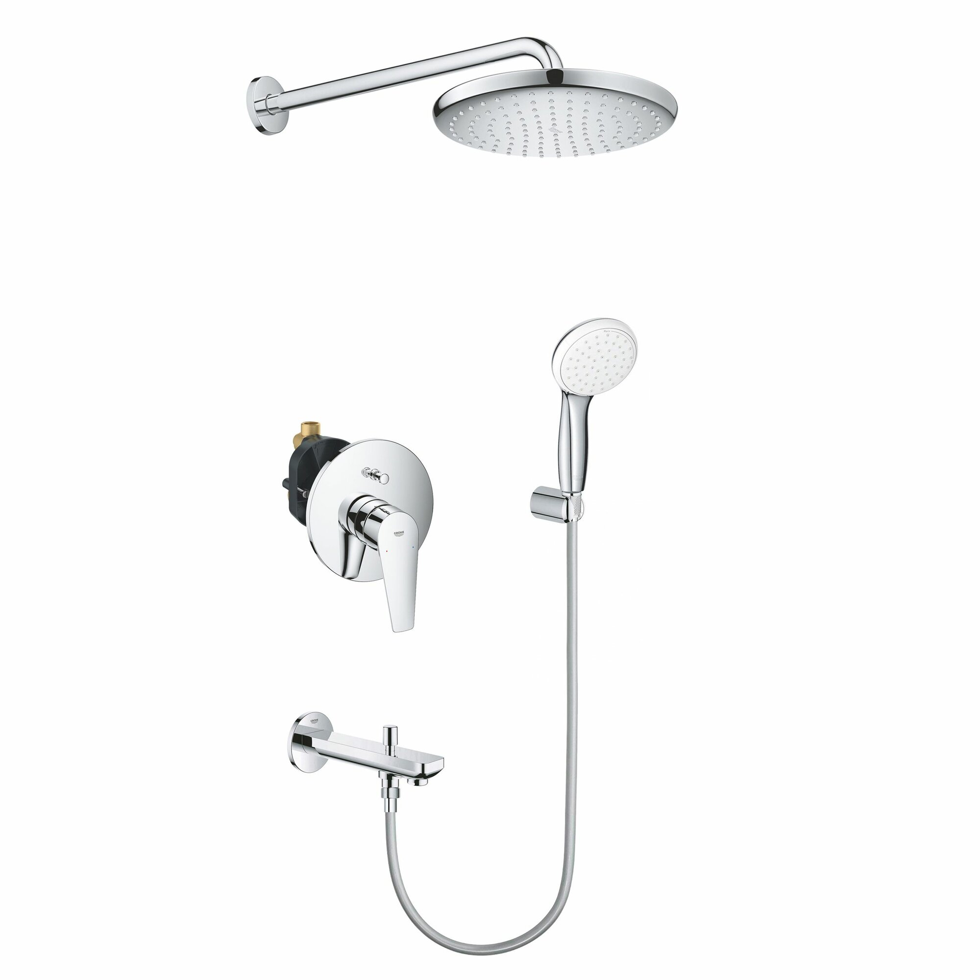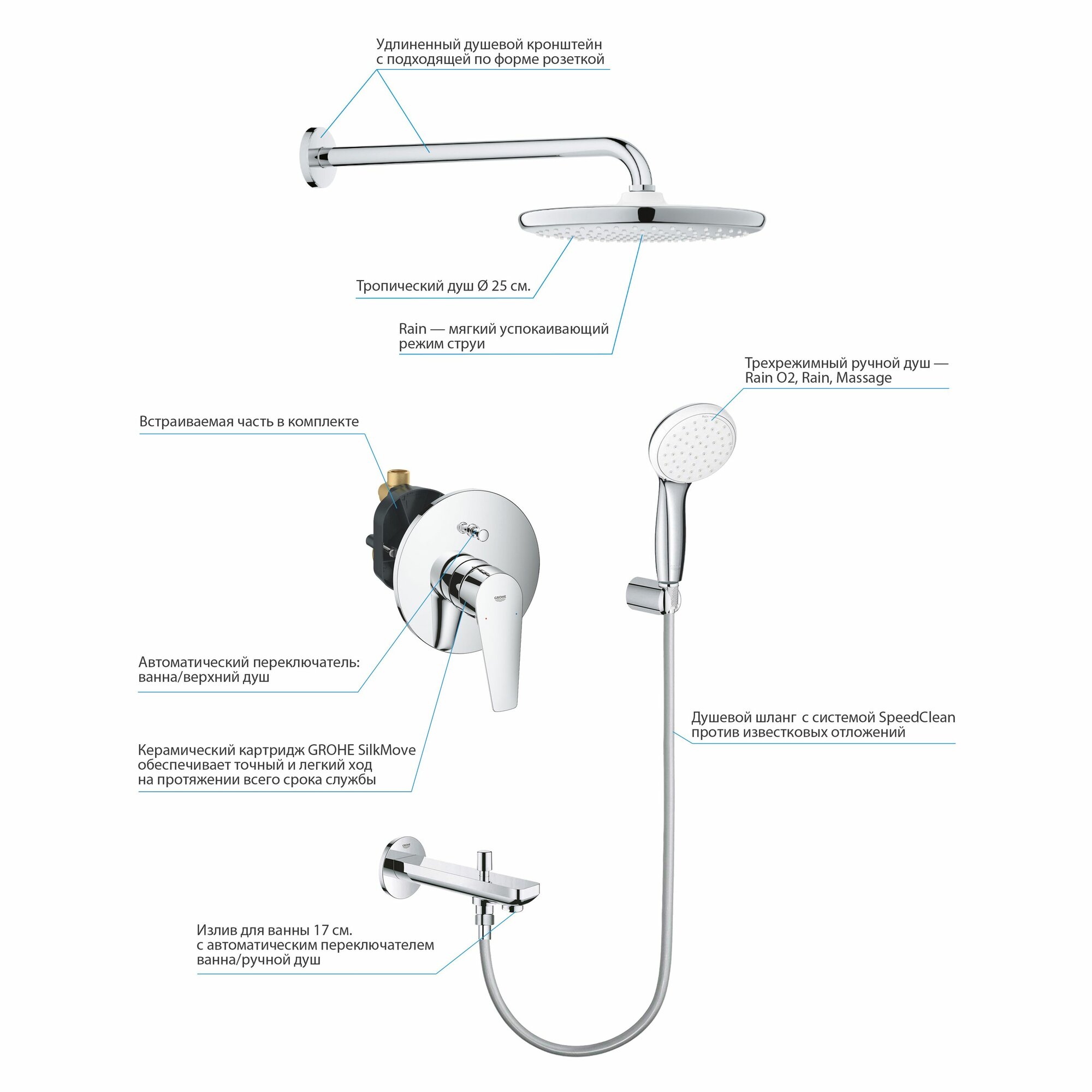 Душевая система с изливом и тропическим душем Grohe BauEdge New Contemporary 250, хром интересное: