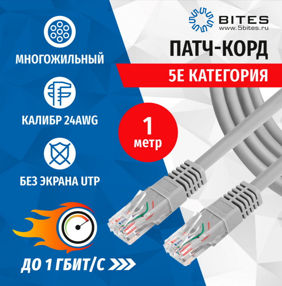 Patch Cord -1м. 5Bites PUT50-010A Патчкорд UTP 5E (серый) интересное: