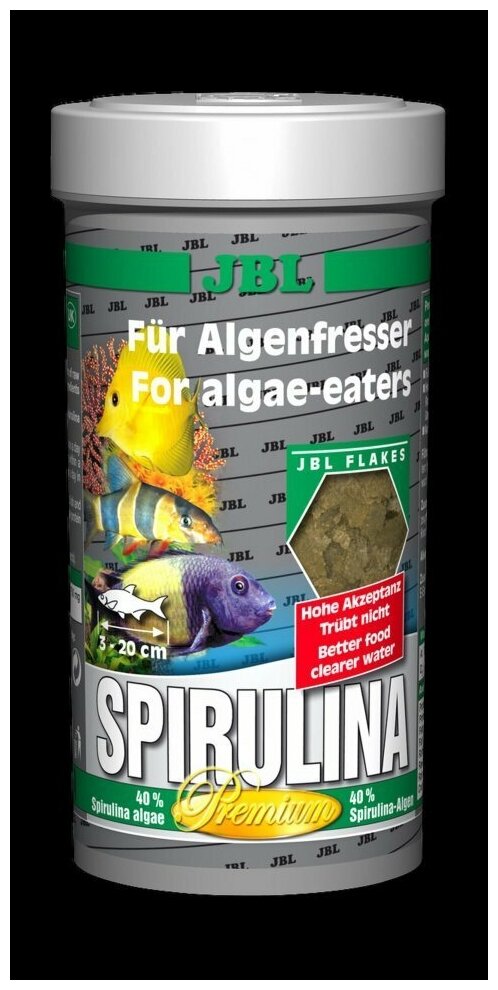 Ниже Вы можете прочитать отзывы на JBL Spirulina - Основной корм премиум-класса в форме хлопьев для растительноядных аквариумных рыб, 1000 мл (160 г), ознакомится с подробными характеристиками, посмотреть интересные обзоры и фотографии на JBL Spirulina - Основной корм премиум-класса в форме хлопьев для растительноядных аквариумных рыб, 1000 мл (160 г).