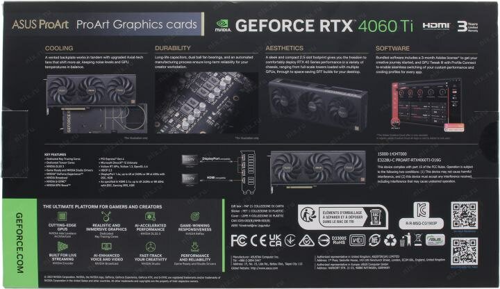 Ниже Вы можете прочитать отзывы на Видеокарта ASUS ProArt GeForce RTX 4060 Ti OC edition 16 ГБ GDDR6 (PROART-RTX4060TI-O16G, 90YV0JH2-M0NA00), ознакомится с подробными характеристиками, посмотреть интересные обзоры и фотографии на Видеокарта ASUS ProArt GeForce RTX 4060 Ti OC edition 16 ГБ GDDR6 (PROART-RTX4060TI-O16G, 90YV0JH2-M0NA00).