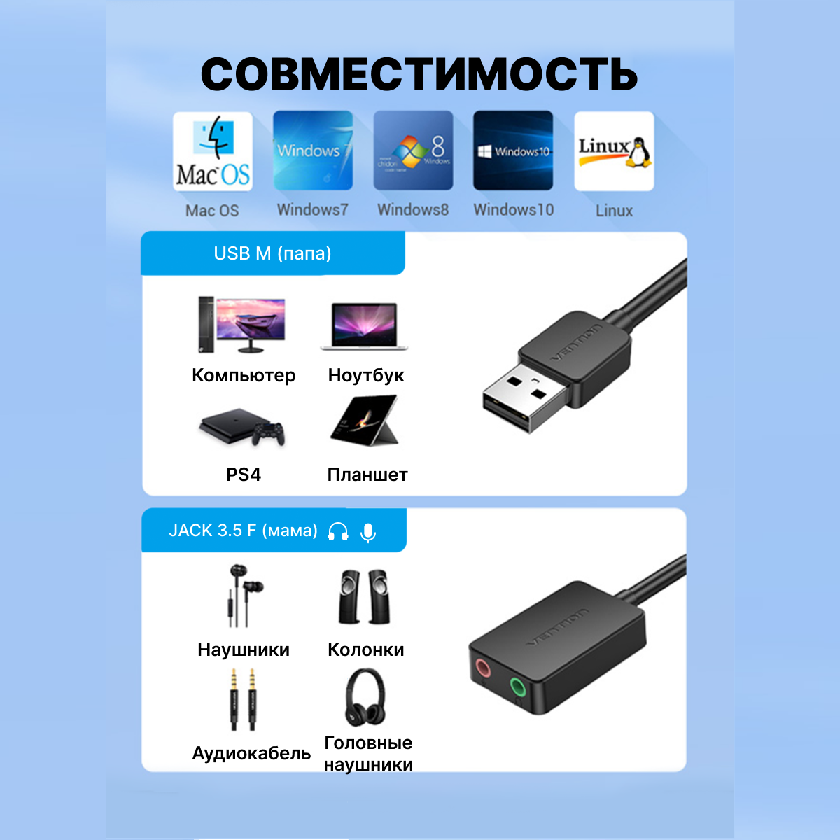 Звуковая карта Vention CDYB0 USB . интересное: