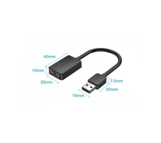 Внешняя звуковая карта на 2 порта Jack 3,5 Vention для наушников, микрофона, компьютера, адаптер USB 2.0, арт. CDYB0