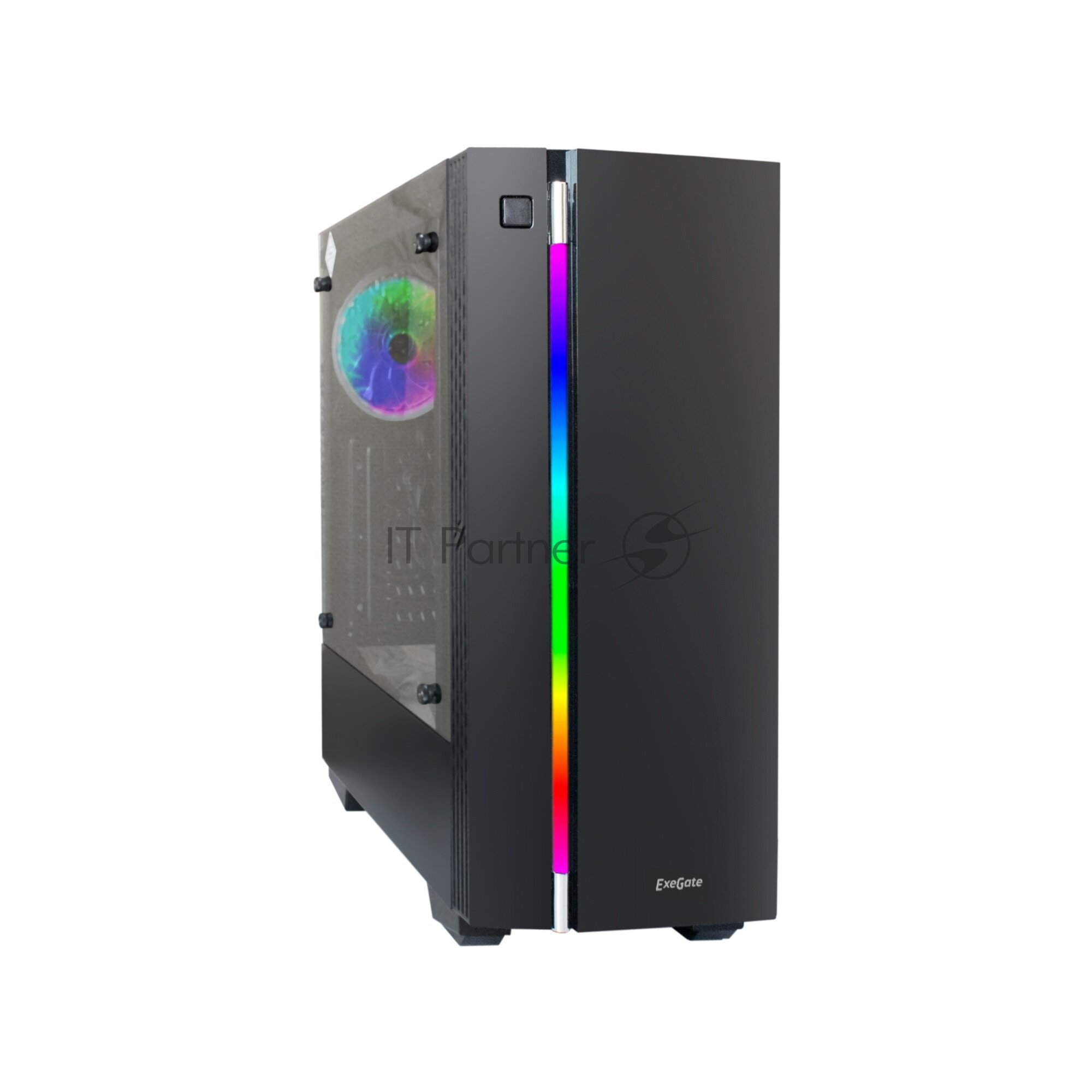 Корпус Miditower ExeGate EVO-9201-NPX600 (ATX, БП 600NPX с вент. 12см, с окном, 2*USB+1*USB3.0, HD аудио, черный, 1 вент. с RGB подсветкой) EX283742RUS
