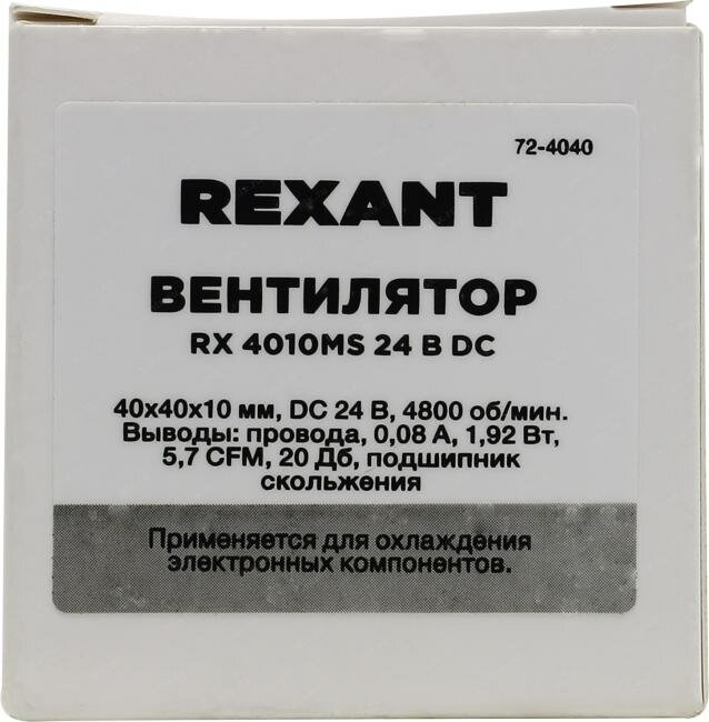 Вентилятор 24В 40х40х10мм 0,08A 1,92W MS RХ Rexant интересное: