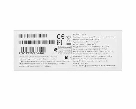 Купить 12.1" Планшет HONOR Pad 9 Wi-Fi, 8/128 Гб, Android 13, голубой