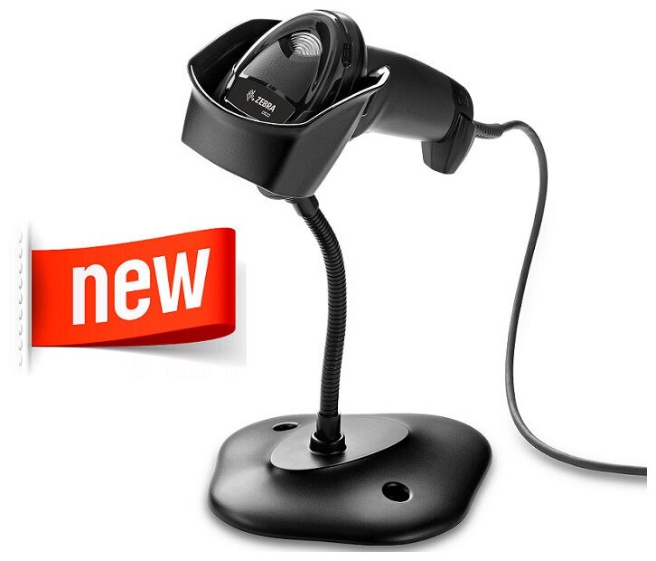 Zebra DS2208-SR BLACK (WITH STAND) USB KIT: DS2208-SR00007ZZWW SCANNER, CBA-U21-S07ZBR SHIELDED USB CABLE, 20-71043-04R STAND