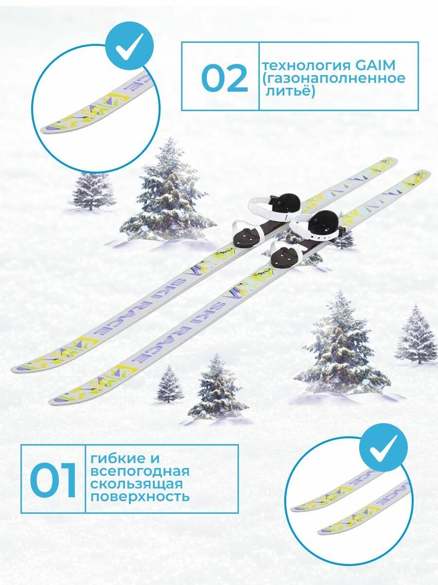 Лыжи для детей, 130 см, с палками, 100 см, универсальное крепление, стеклопластик, серые, Ski Race, 339675-00 интересное:
