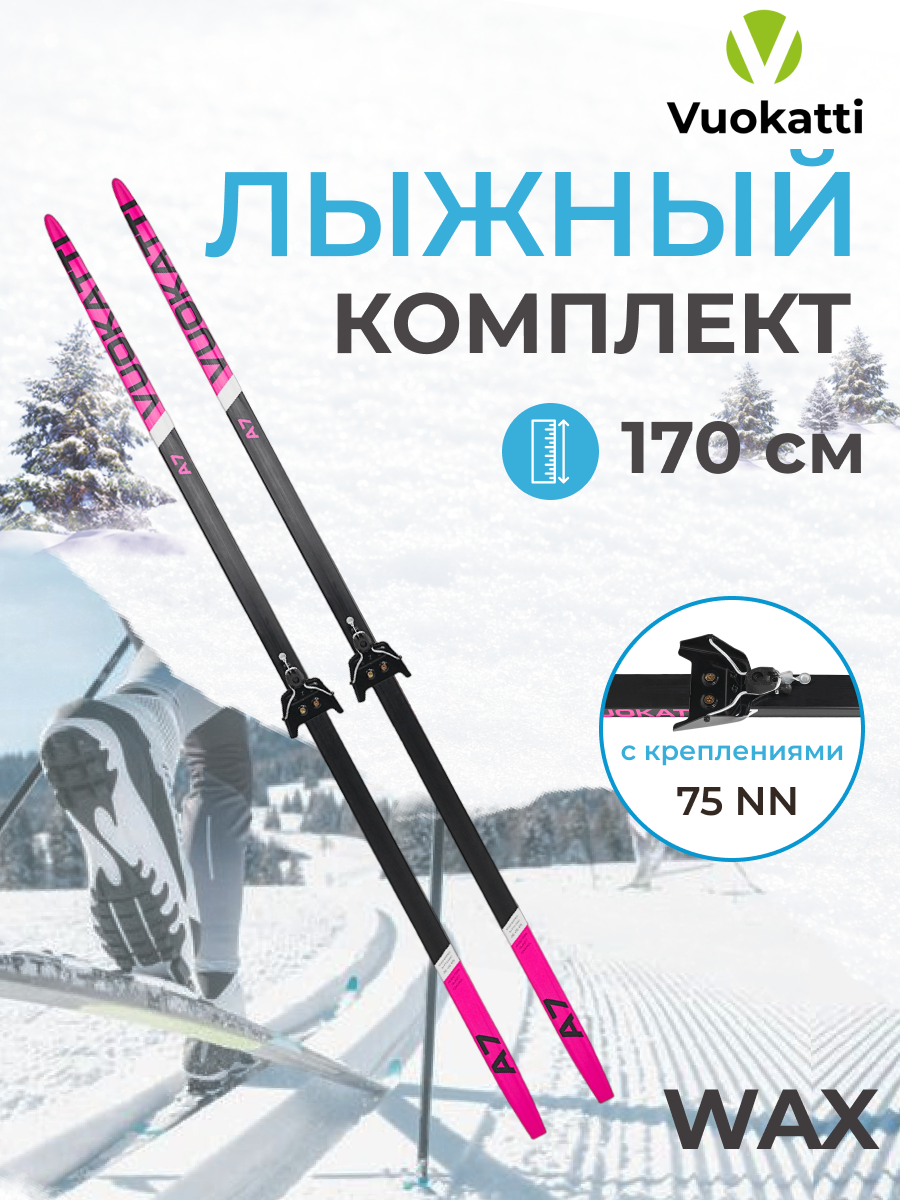 Лыжи беговые комплект VUOKATTI 190 см с креплением 75 мм Wax цвет Black/Magenta
