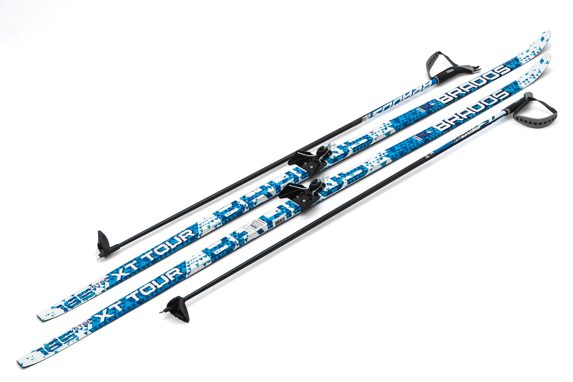 Лыжный комплект с палками и креплением 75 мм - 185 STEP XT TOUR Blue / с насечками интересное: