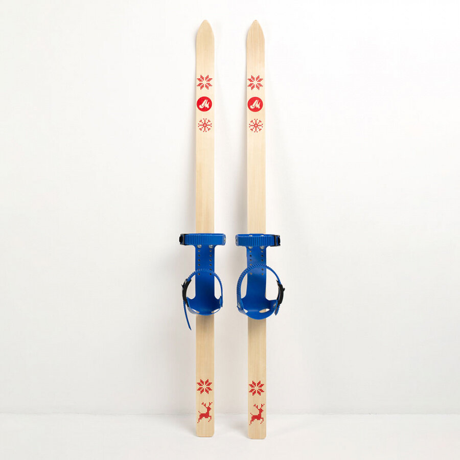 Купить Лыжи детские Маяк Junior 90 см с креплениями и палками, деревянные, синие