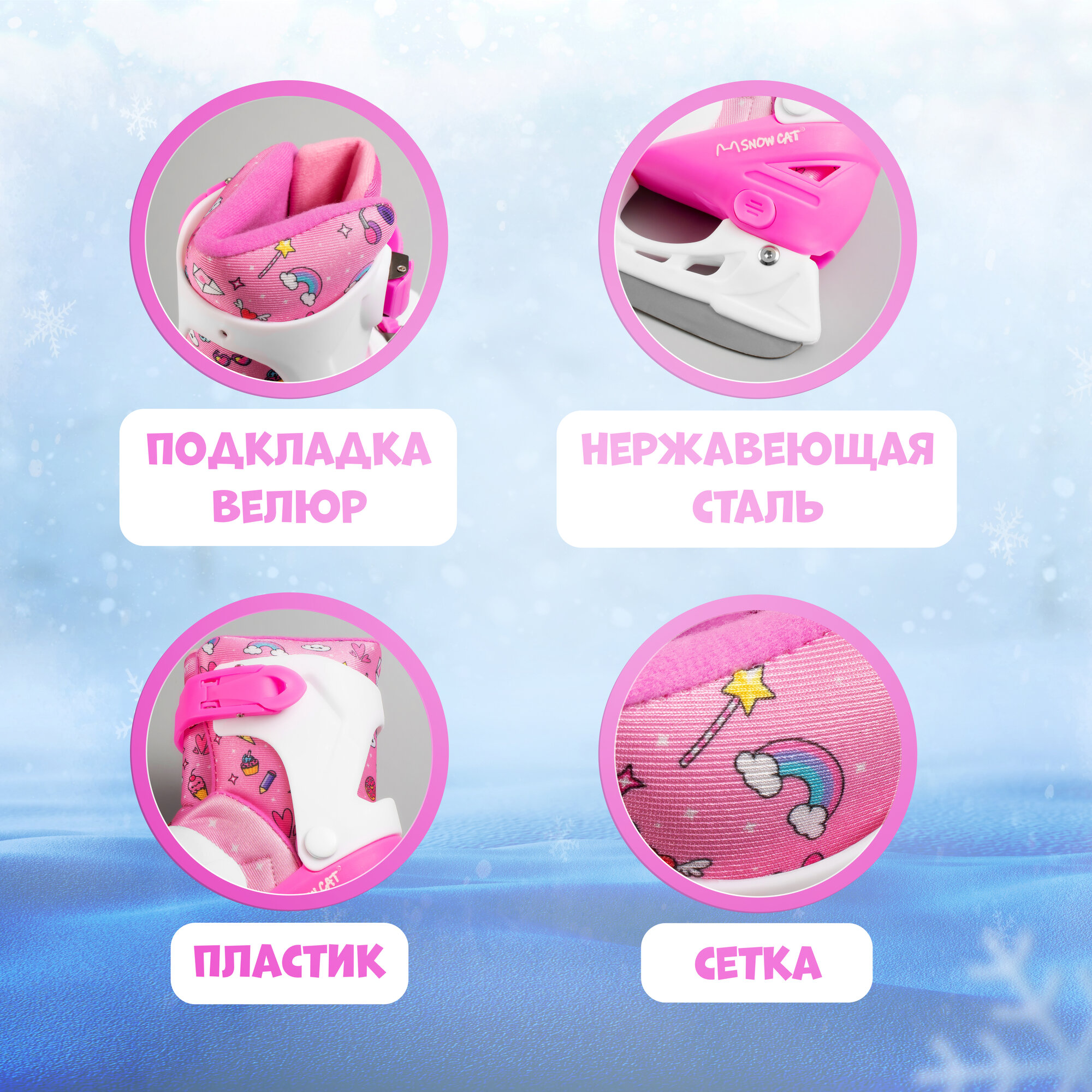 Коньки детские раздвижные Snow Cat, размер 30-33, лезвие из нержавеющей стали, подходят для начинающих и обучения, для прогулочного катания на льду, зимних видов спорта и подвижных спортивных игр