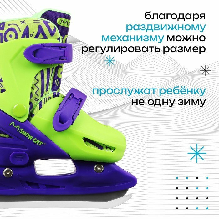 Коньки детские раздвижные Snow Cat, размер 34-37, цвет салатовый, фиолетовый