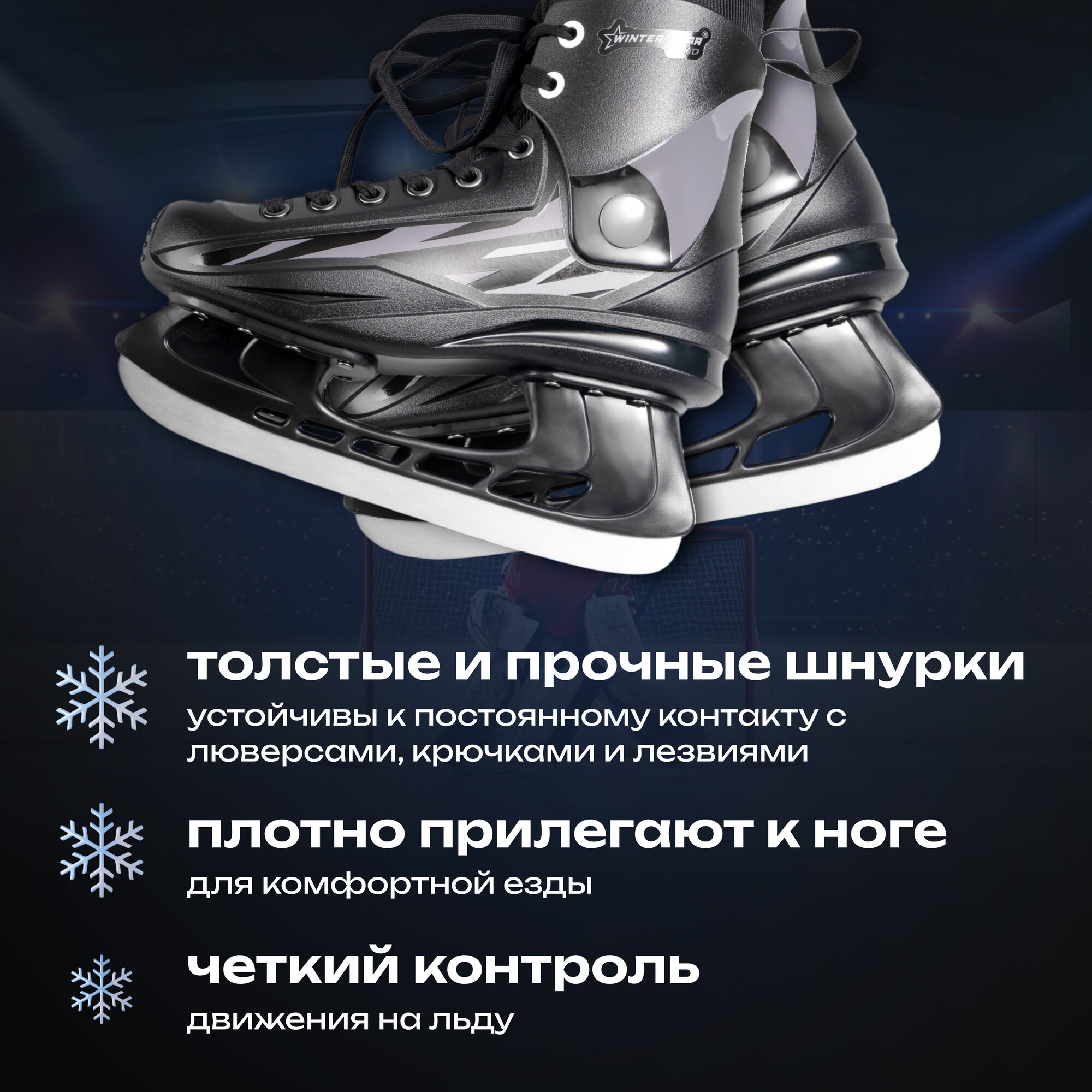 Коньки хоккейные прокатные Winter Star взрослые, размер 41, морозостойкий пластик, лезвие из нержавеющей стали 3 мм, для катания на льду, зимних видов спорта и подвижных спортивных игр