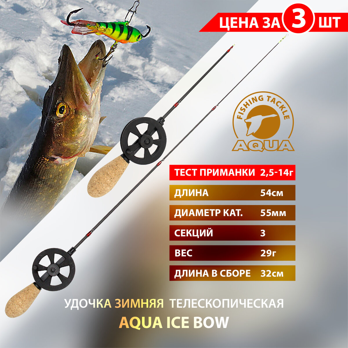 Купить Зимняя удочка AQUA Ice Bow с катушкой, телескопическая, длина 54 см, вес 29 гр, 3 штуки