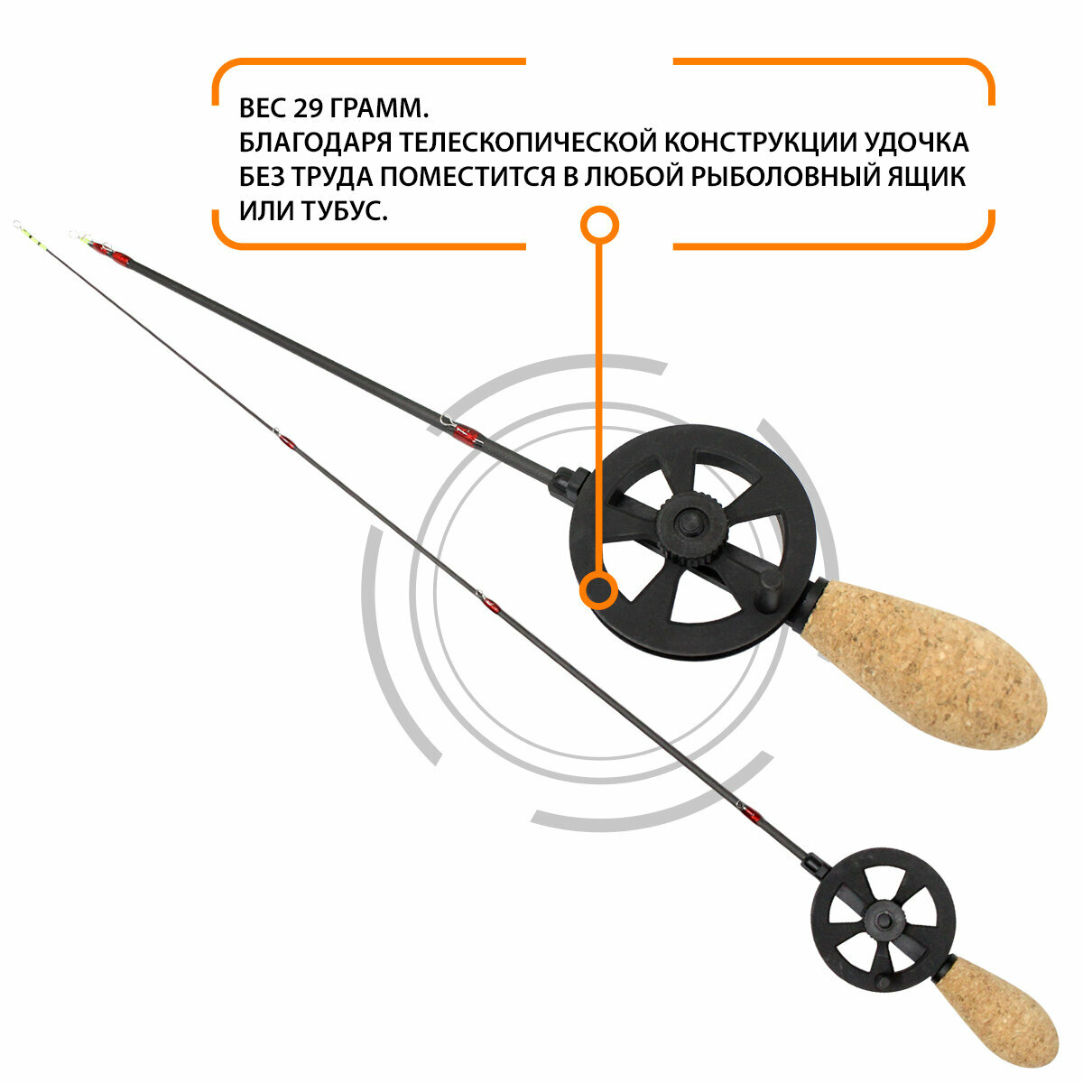 Удочка для зимней рыбалки AQUA ICE BOW телескопическая с катушкой и пробковой ручкой (зимняя удочка)