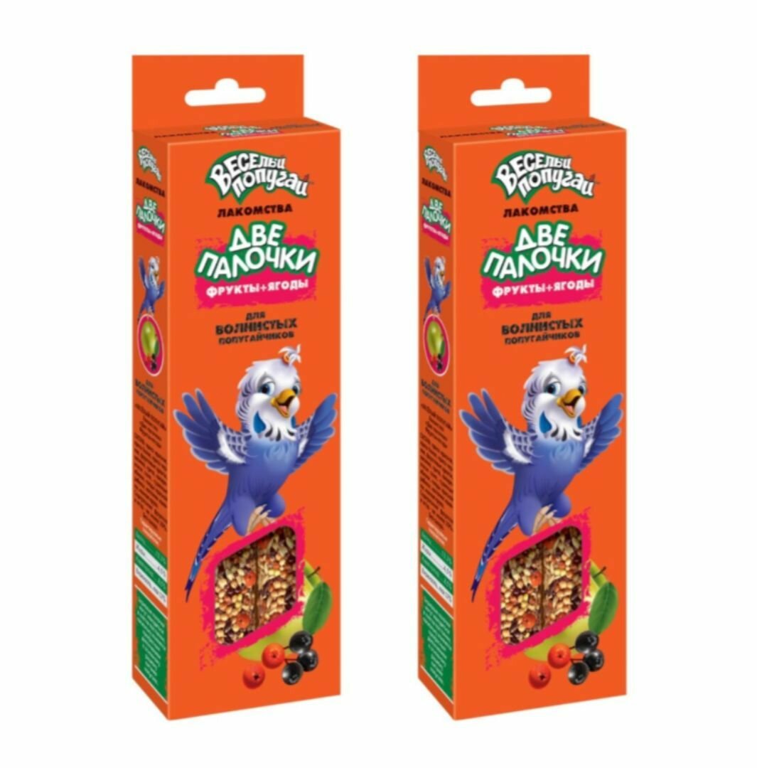 Веселый попугай Лакомство Две палочки фрукты + ягоды для волнистых попугаев, 70 г
