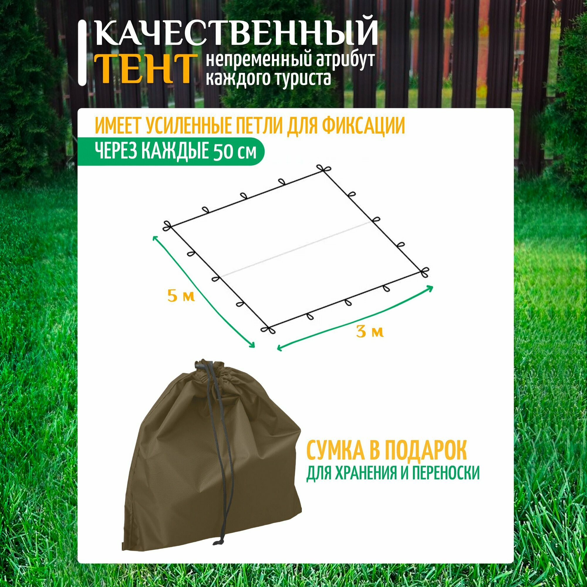 Купить Тент туристический 5 х 3 м, хаки, навес, полог, походный, тент укрывной от дождя и солнца