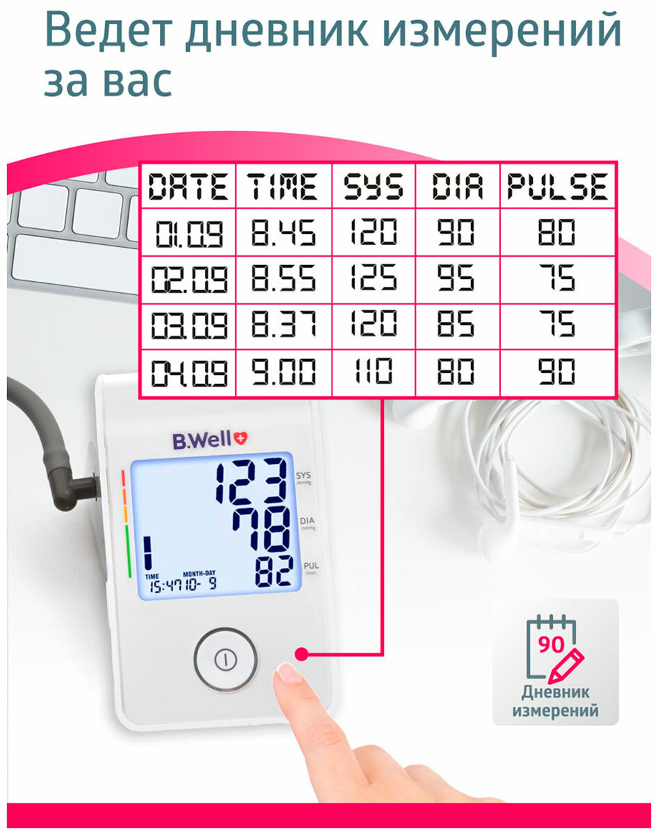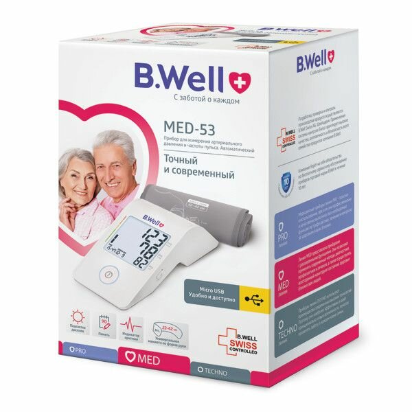 Тонометр автоматический для измерения давления B.Well MED-53 с usb кабелем и универсальной анатомичной манжетой 22-42 см интересное: