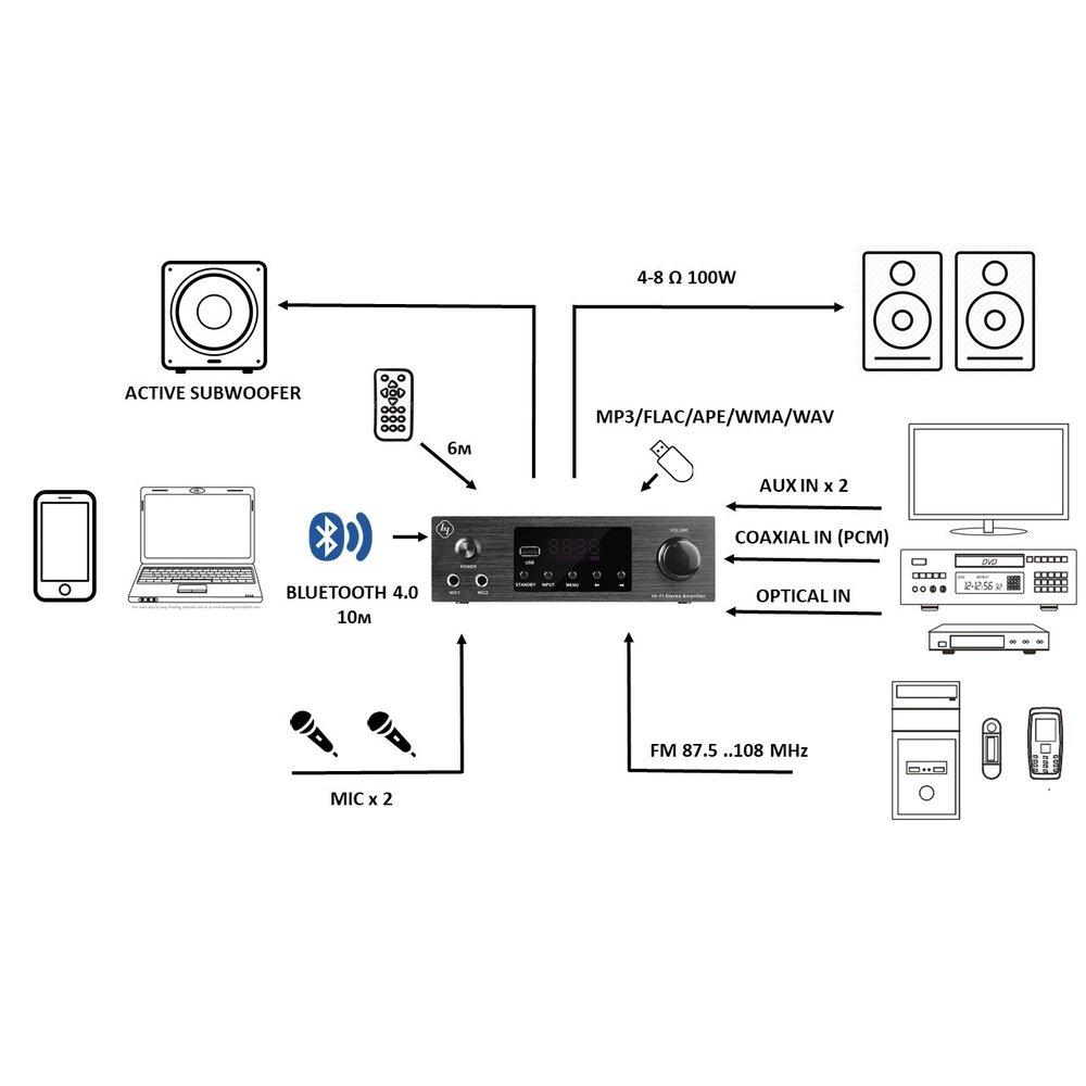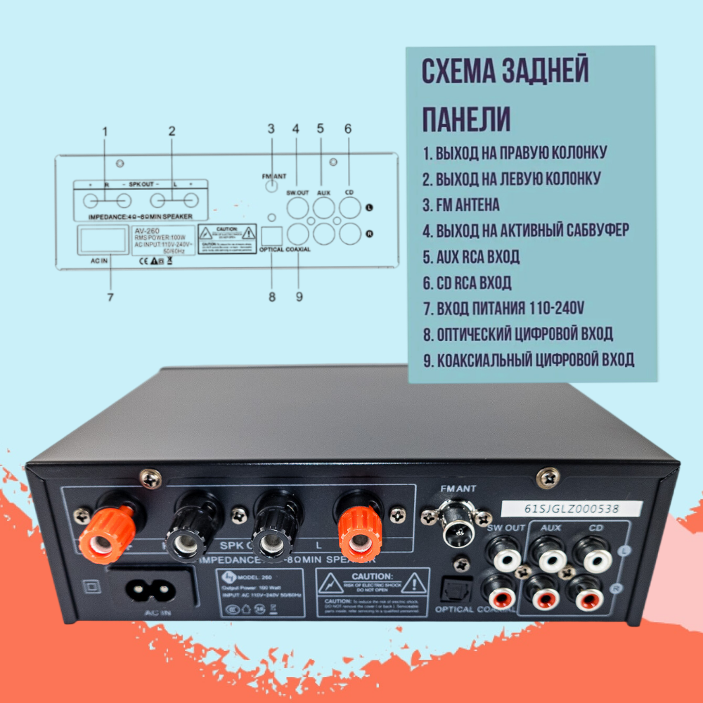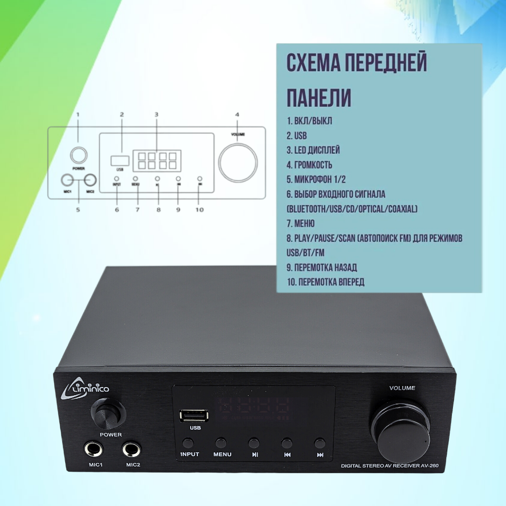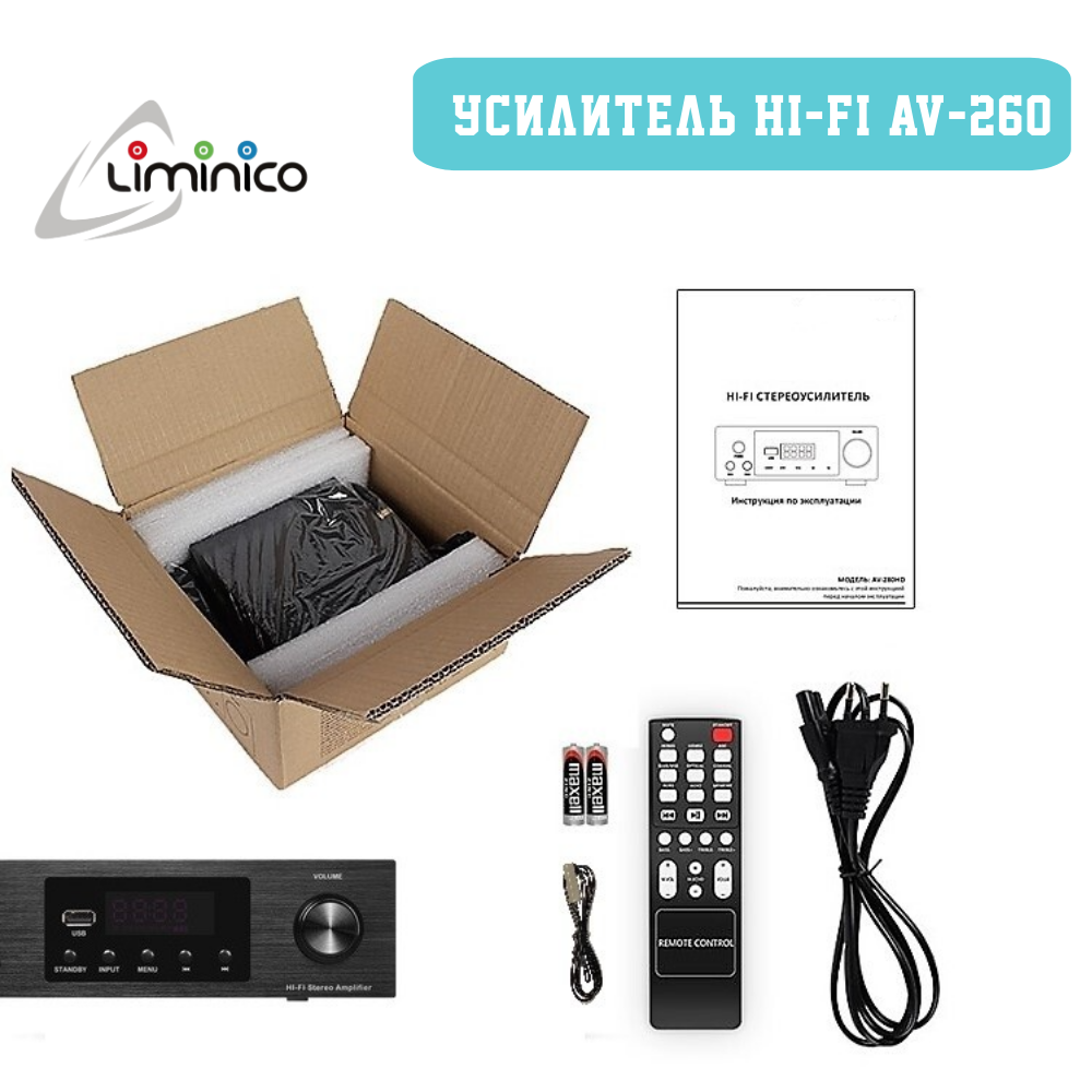 Аудио Bluetooth усилитель звука Liminico АV-260 4-канальный, пульт ДУ, стереоусилитель HI-Fi интересное:
