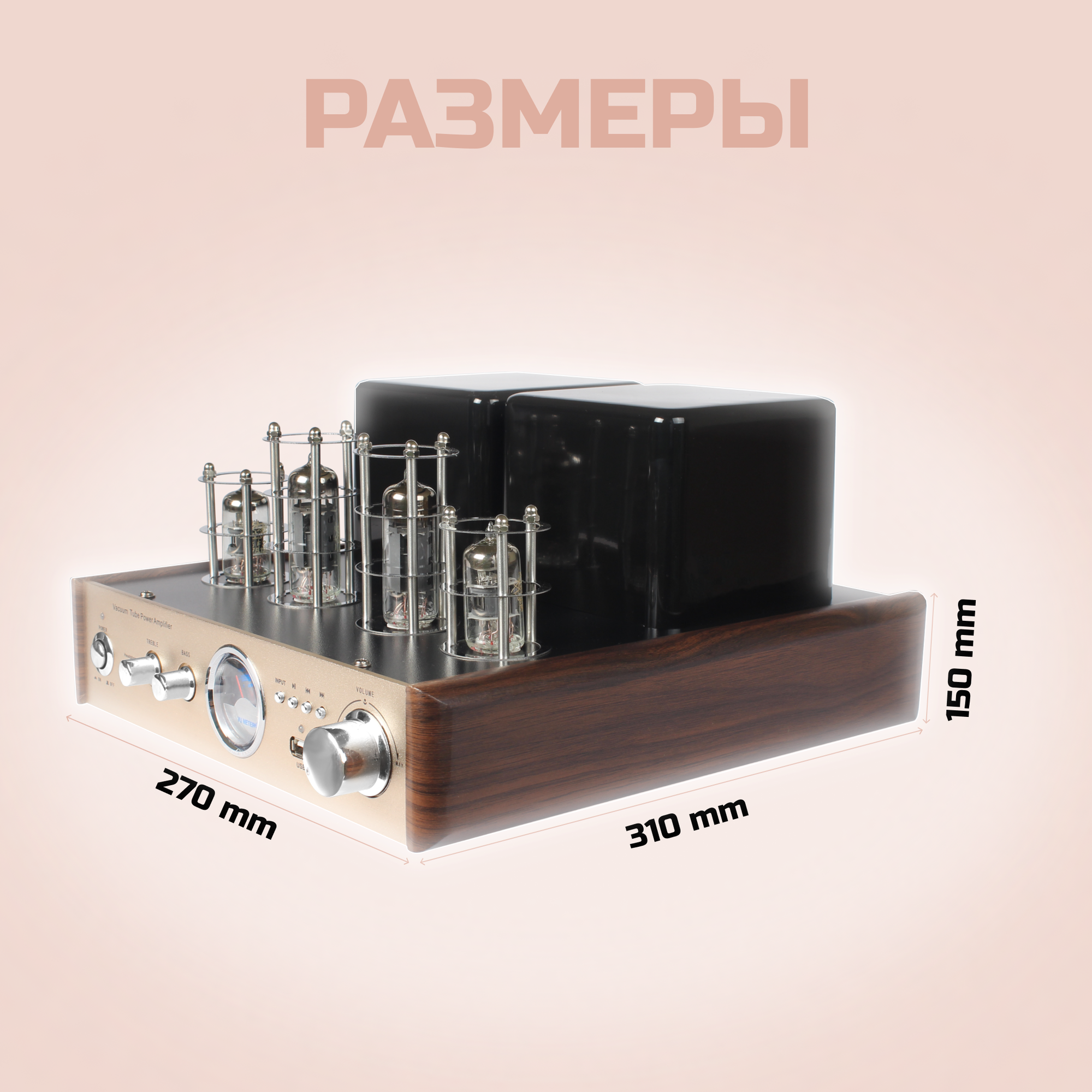 Ламповый усилитель звука HYPER SOUND AV-2030R, золотой алюминиевый корпус, эстетика и мощь в одном устройстве, 60 Вт.