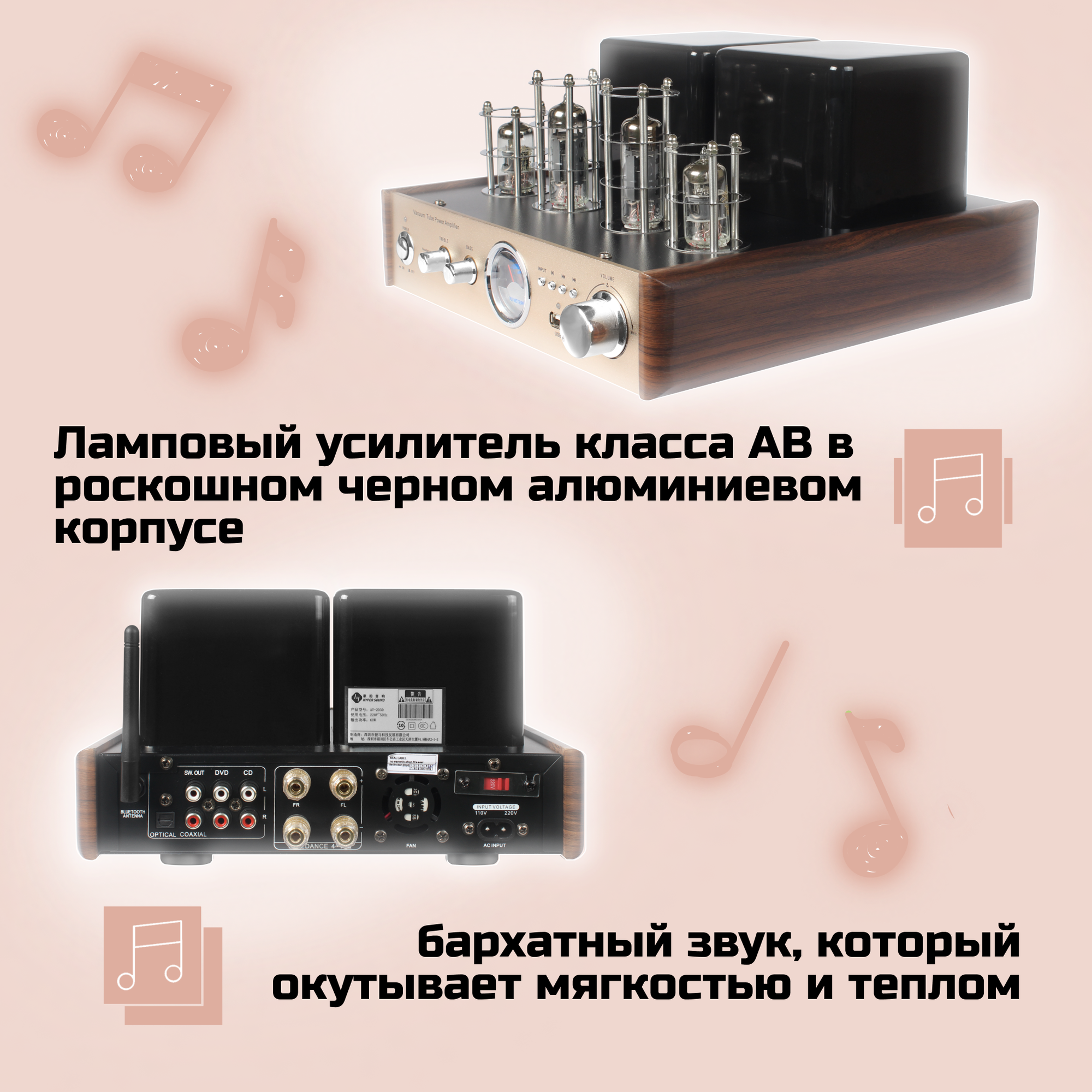 Усилитель звука Hyper Sound AV-2030R ламповый интересное: