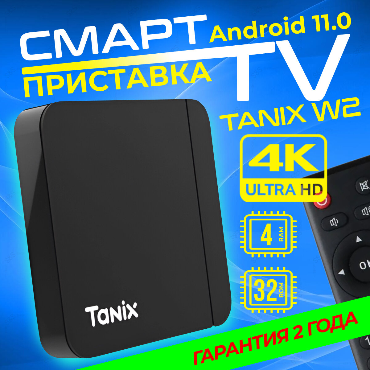 Смарт-ТВ приставка Tanix W2, Android 11, 2 ГБ/32 ГБ, 4K, Wi-Fi