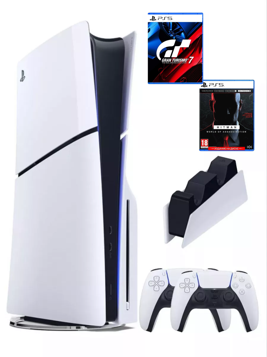 Купить PS5 (ПС5) Игровая приставка Sony PlayStation 5 Slim disk + 2-й геймпад(белый) + зарядное + 2 игры Gran Turismo+ Hitman , 1000Gb