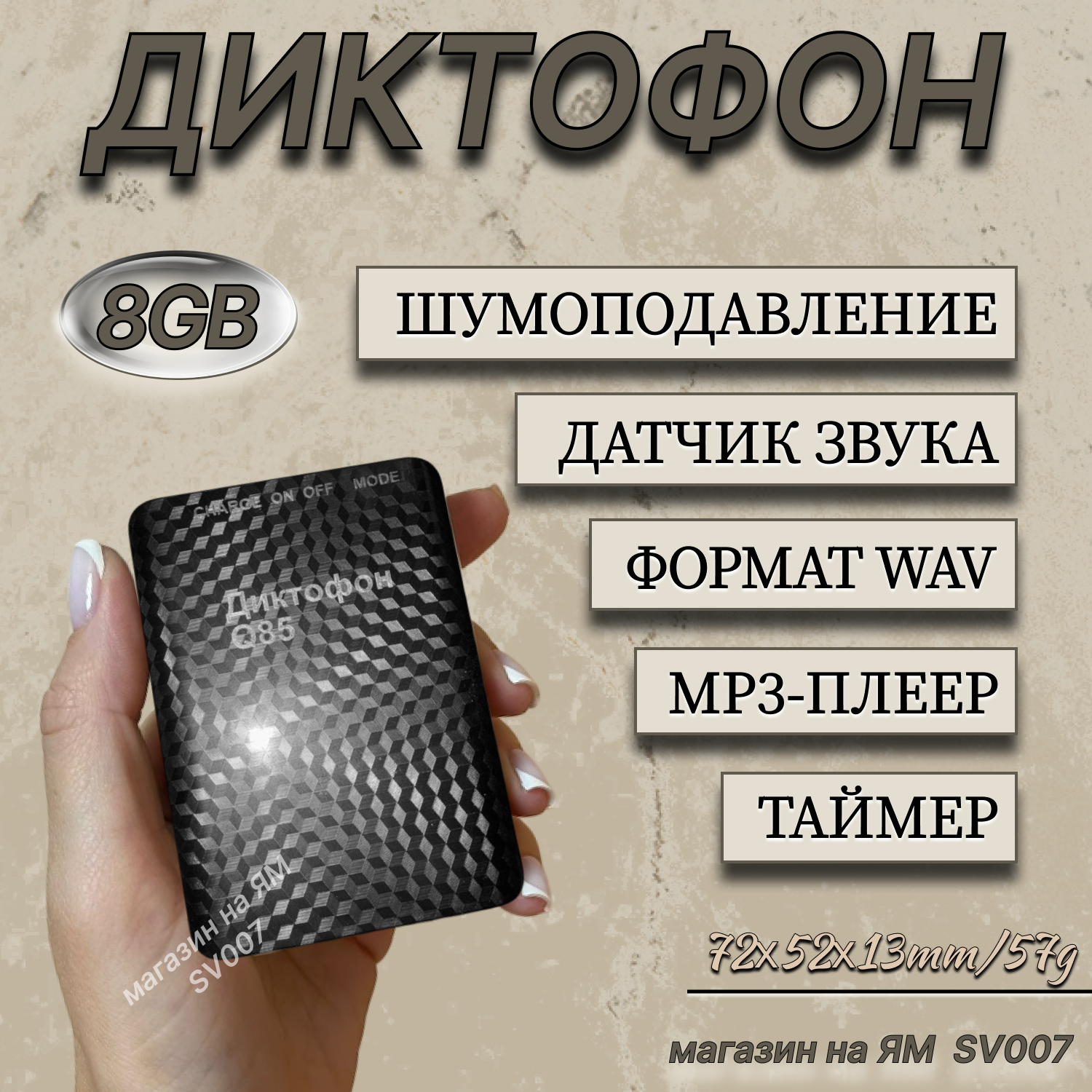 Цифровой диктофон Q85 1750mAh, встроенная память 8GB, 144 часа записи, датчик звука, шумоподавление, запись во время зарядки интересное: