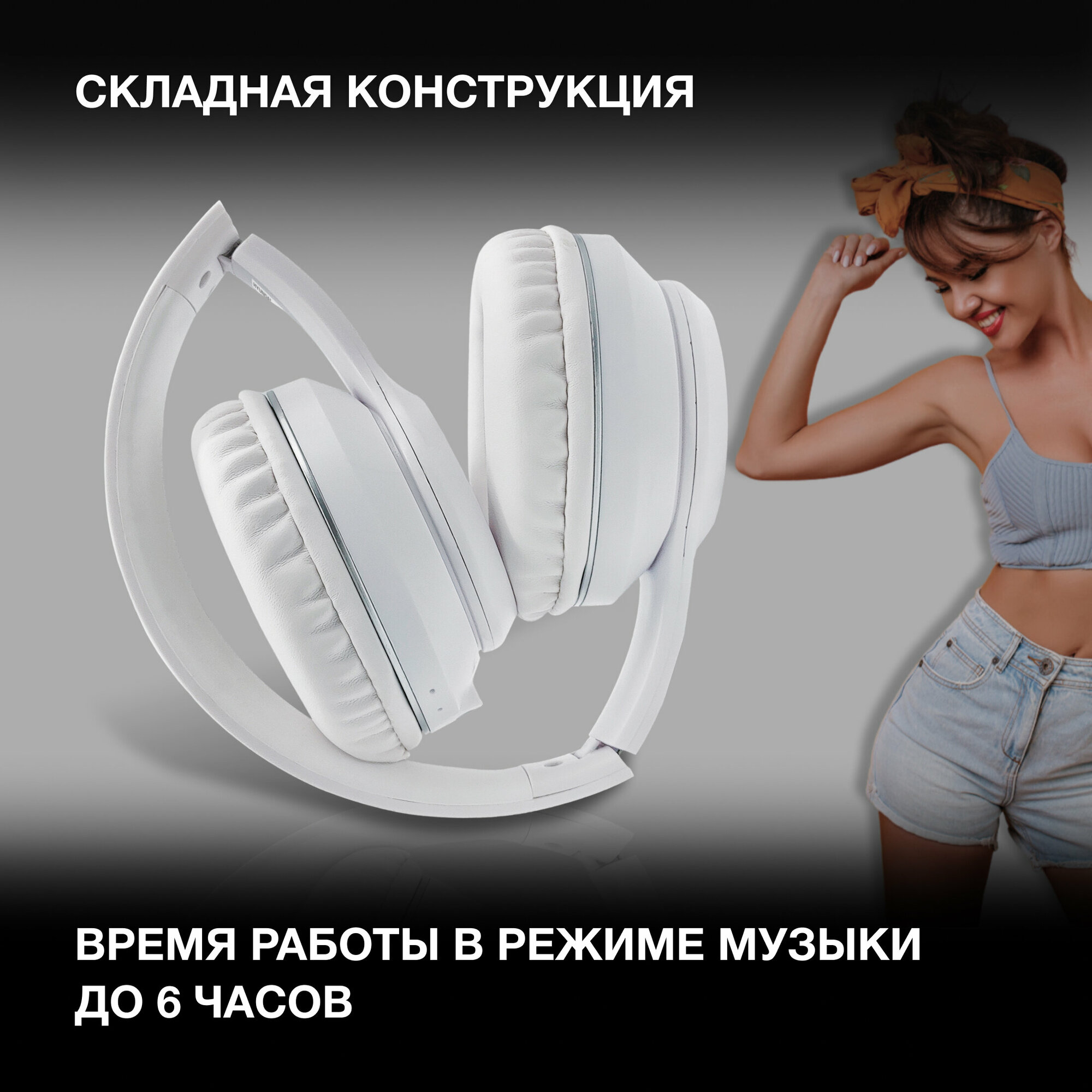 Купить Беспроводные наушники накладные с Bluetooth H-HP103 Hyundai, белый / Bluetooth наушники / Наушники с микрофоном, складные наушники, гарнитура, водонепроницаемые