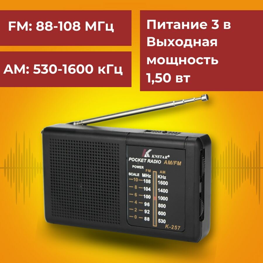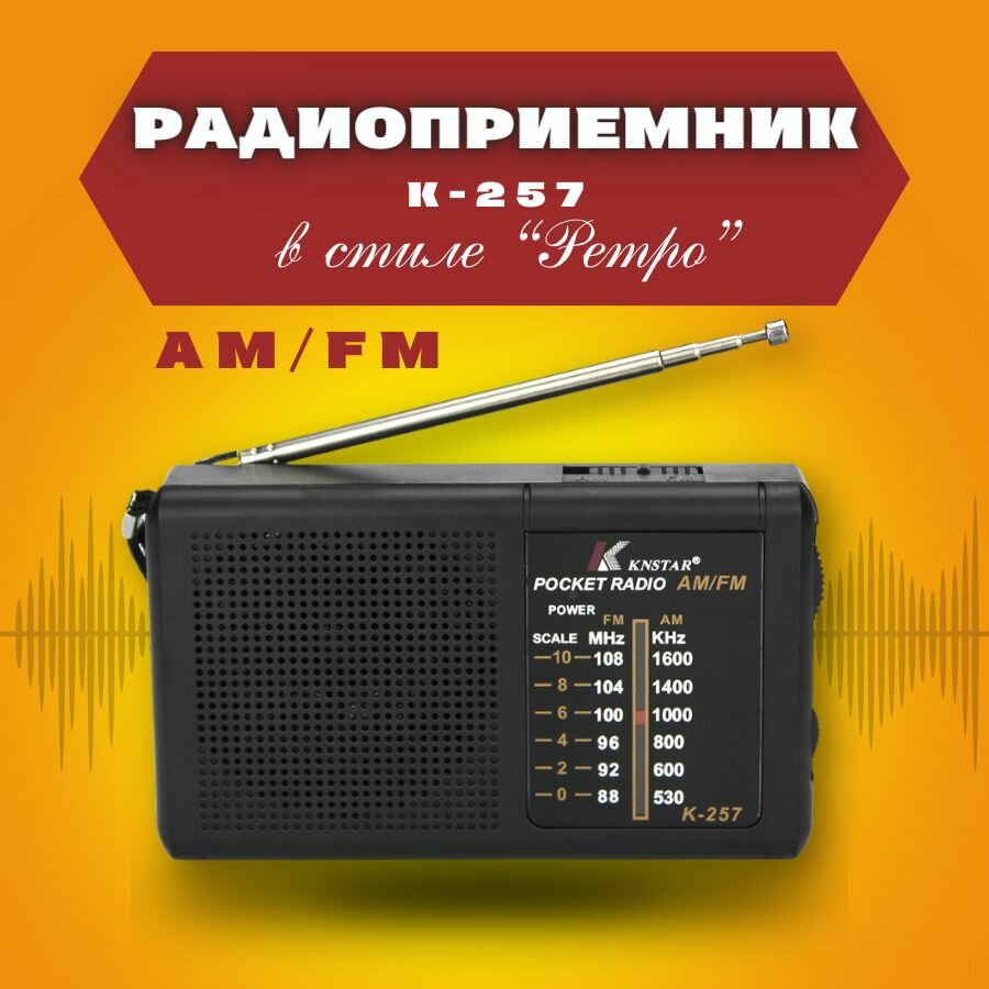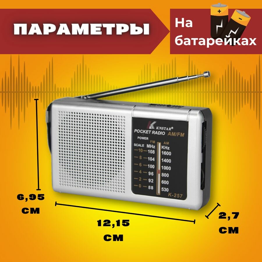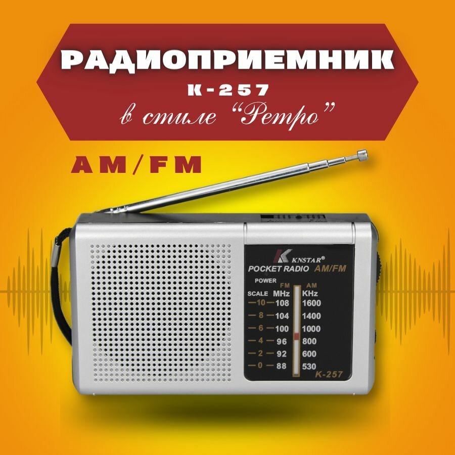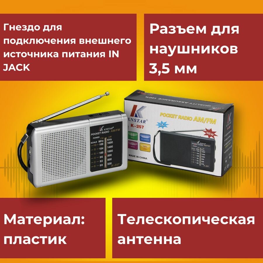 Радиоприёмник K-257 с приёмом FM/AM радиоволн, с разъёмом для подключения наушников. интересное: