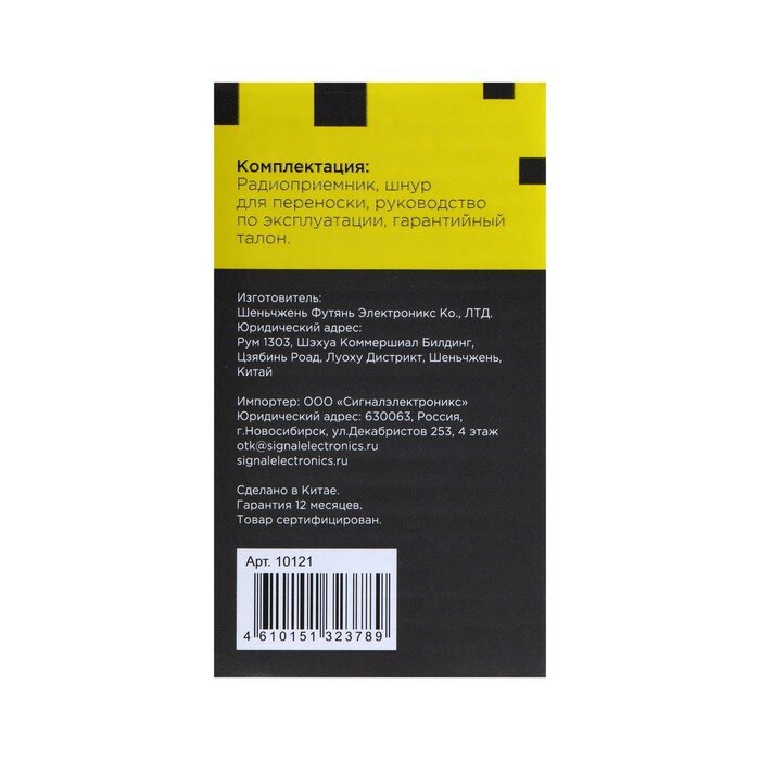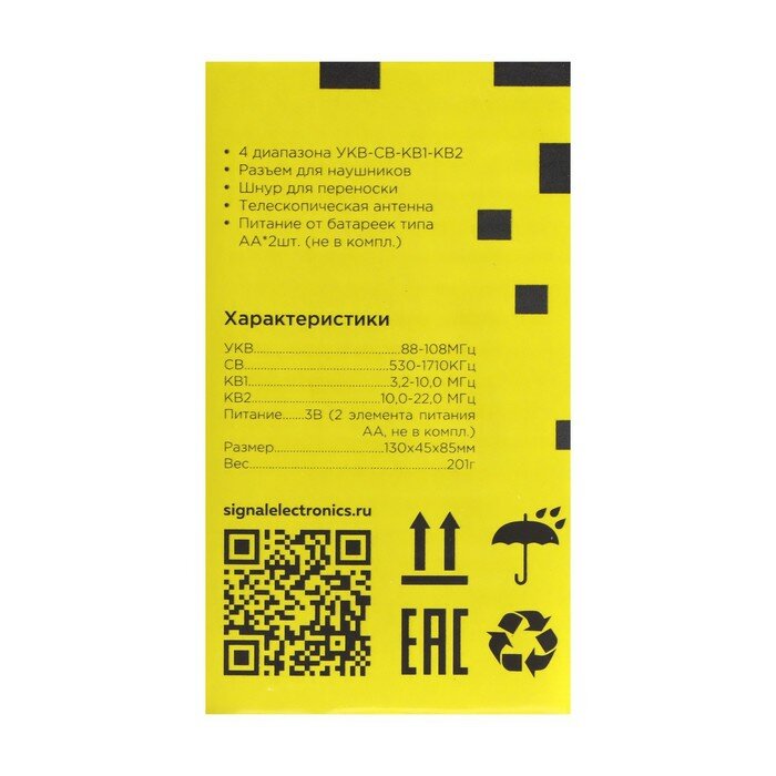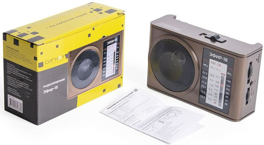 Радиоприемник Сигнал Эфир-18 УКВ 88-108МГц, СВ 530-1600КГц, КВ, бат. 2*AA