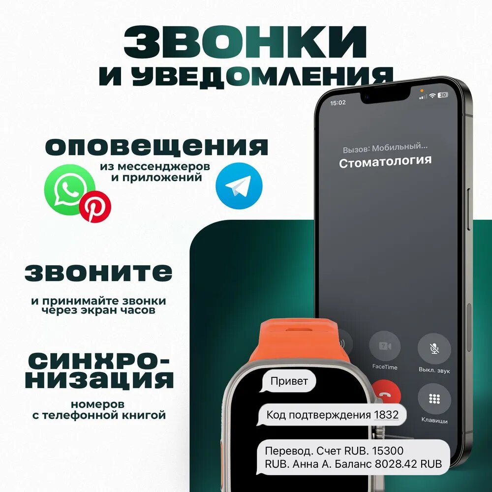 Умные смарт часы HK9 Ultra 2 Smart Watch, AMOLED, iOS, Android, Bluetooth, Уведомления,49mm. Оранжевые