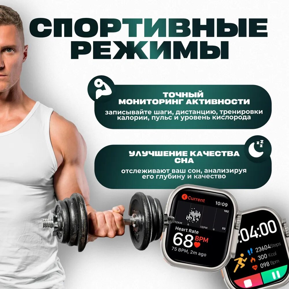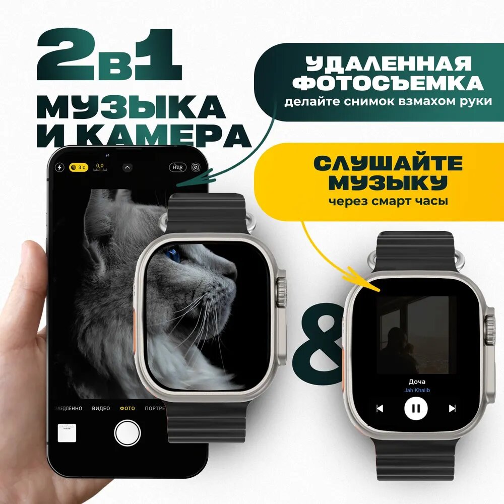 Умные смарт часы HK9 Ultra 2 Smart Watch, 49mm, iOS, Android, Bluetooth звонки, Уведомления, Шагомер, Серебро-Черный