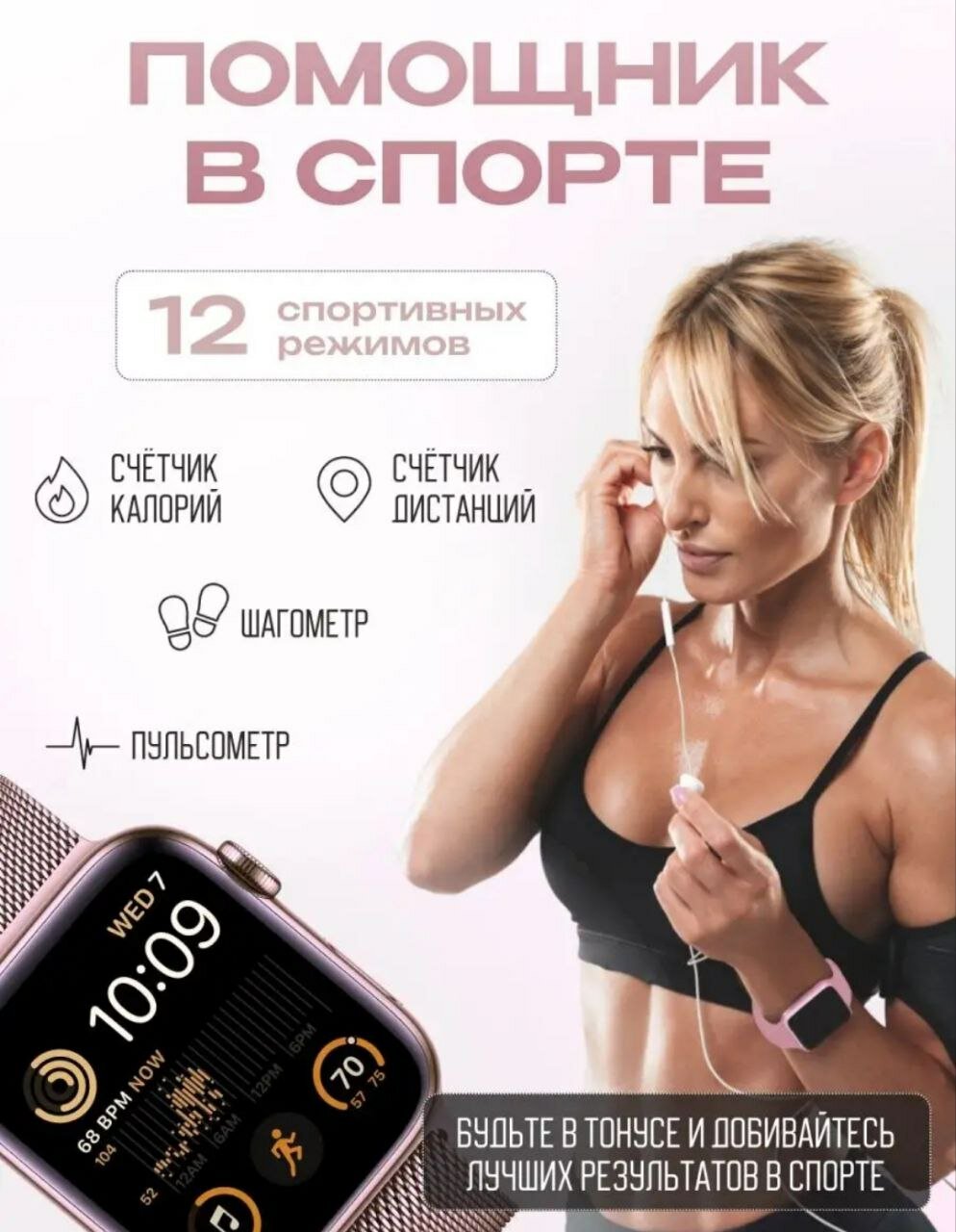 Умные часы X10 pro розовый Smart Watch / Смарт часы Series 10 / Смарт часы женские и мужские / Часы наручные / 2 ремешка в комплекте