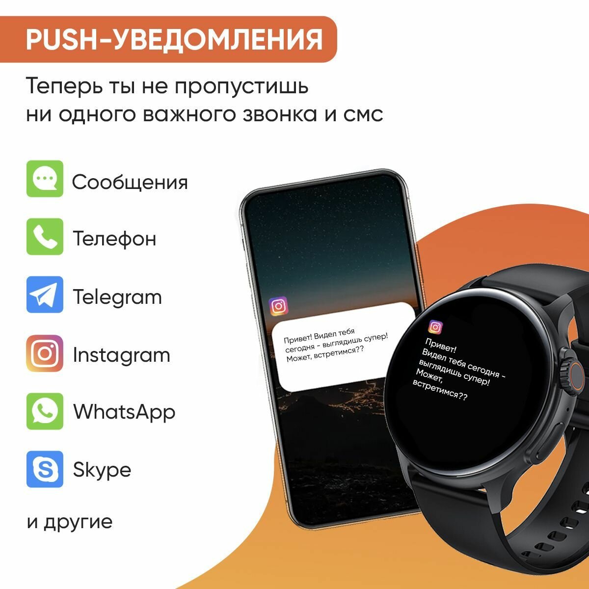 Смарт часы WatchMe / Умные круглые наручные cпортивные smart watch / Женские, мужские