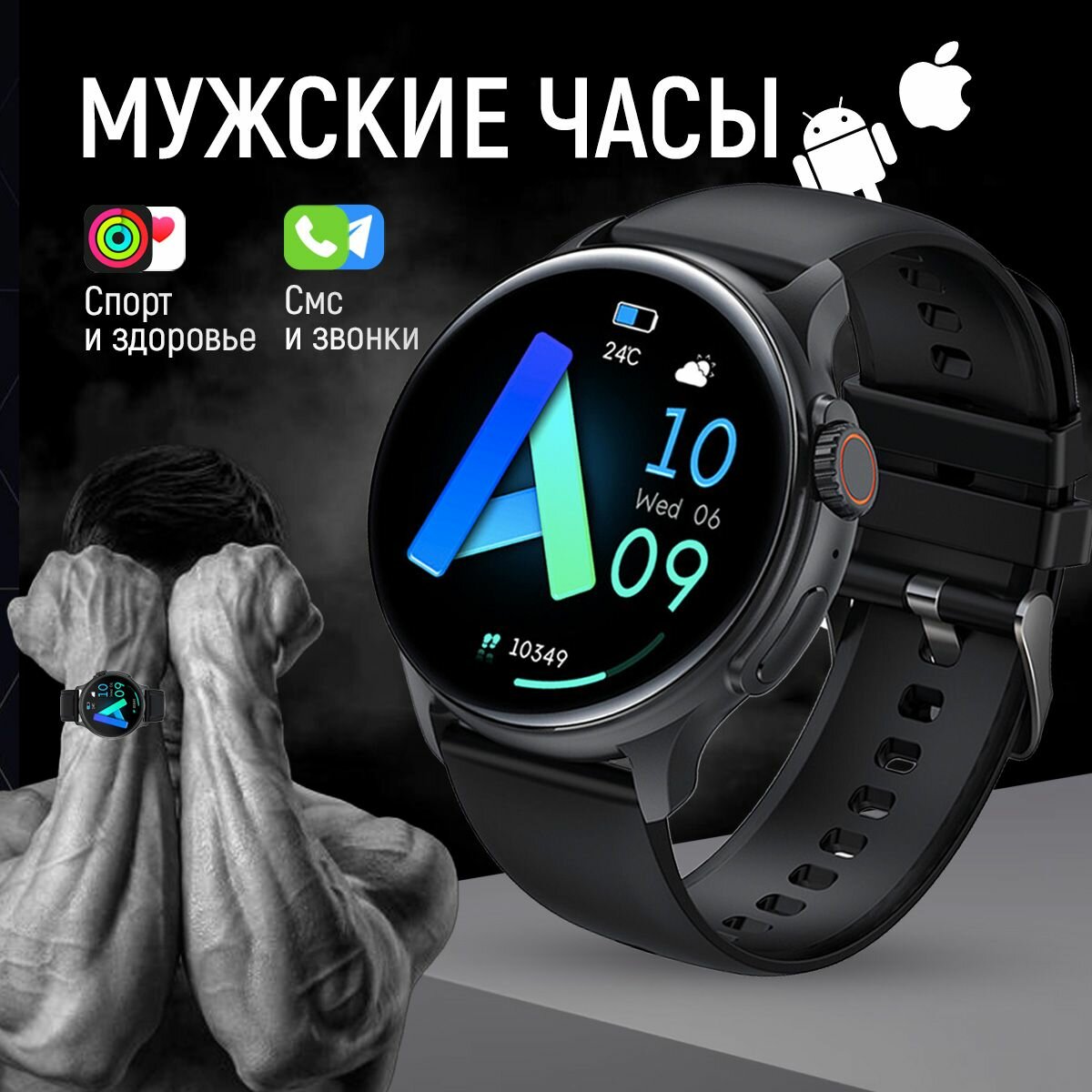 Смарт-часы WatchMe K58, круглые, AMOLED, мужские