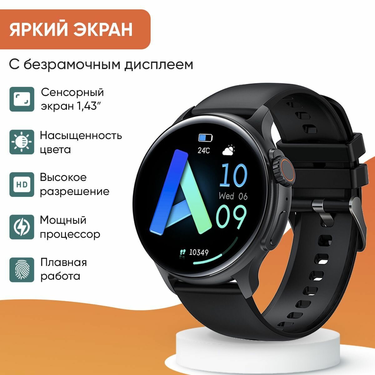 Часы WatchMe K58, Bluetooth, AMOLED, круглые