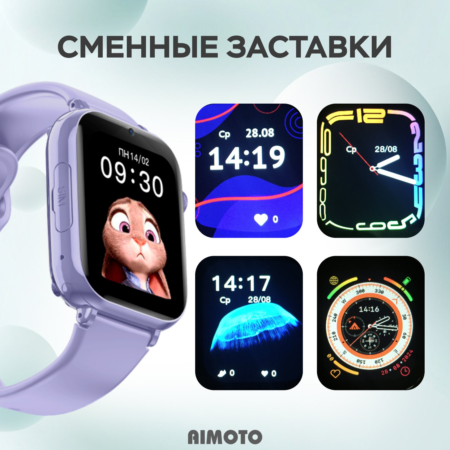 Умные детские смарт-часы 4G Aimoto Style, Лиловый