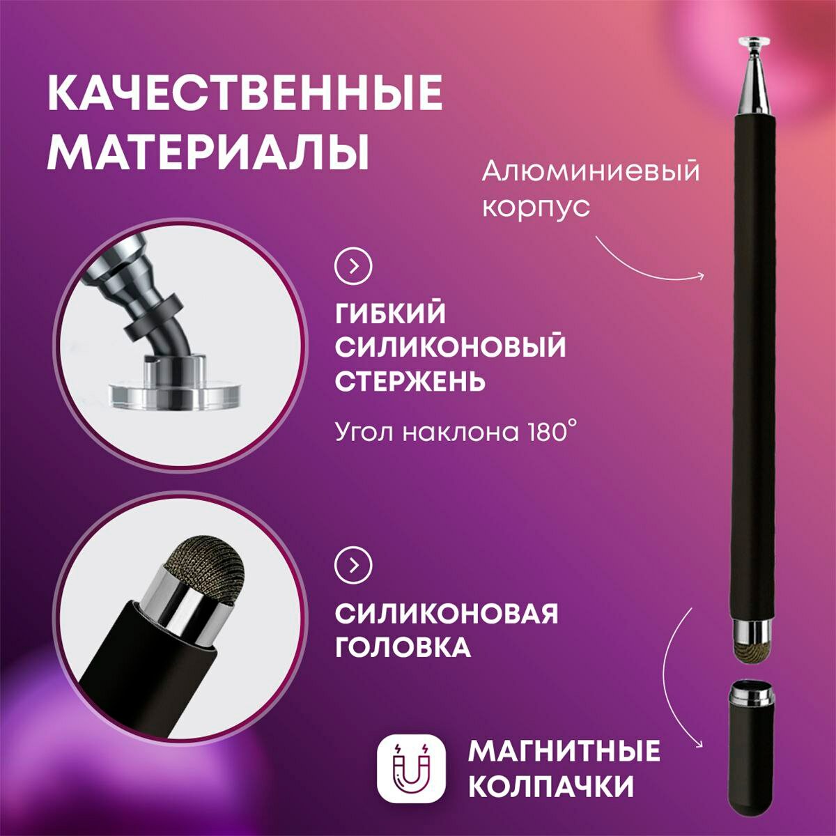Стилус для телефона/планшета 2в1 с ручкой, черный